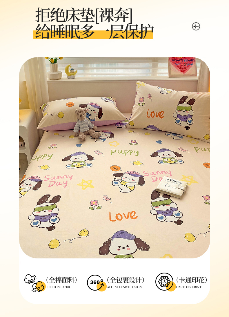 名兮家居 2024新款全棉印花单床笠 潮流小狗