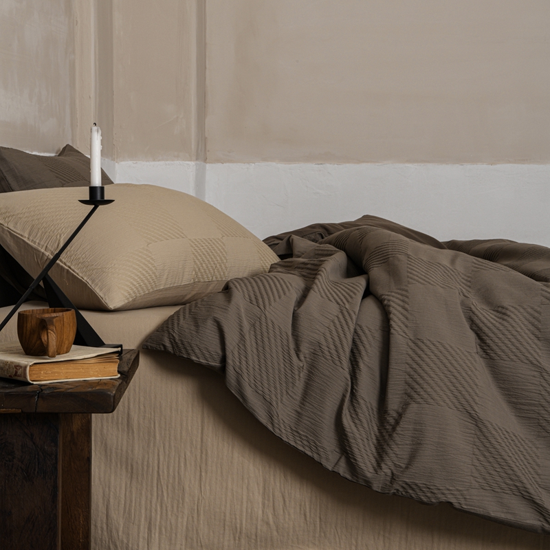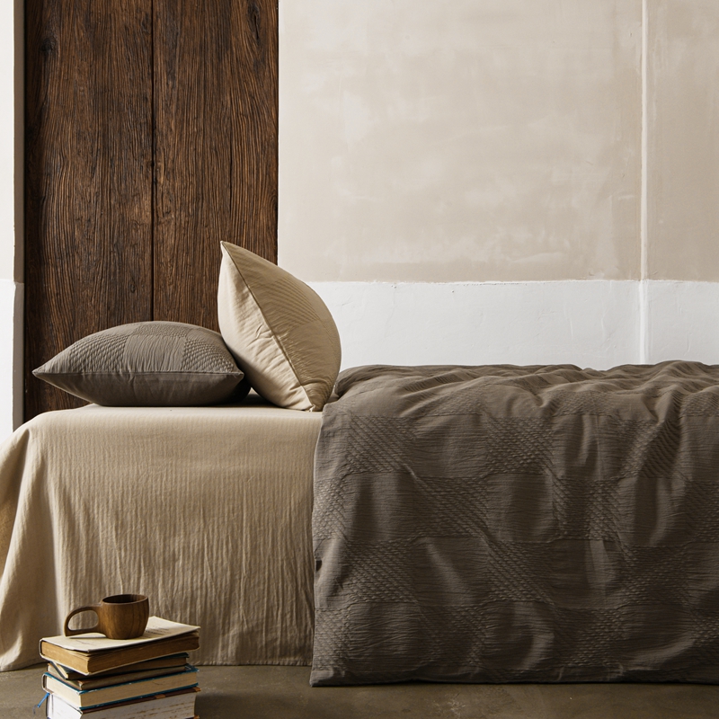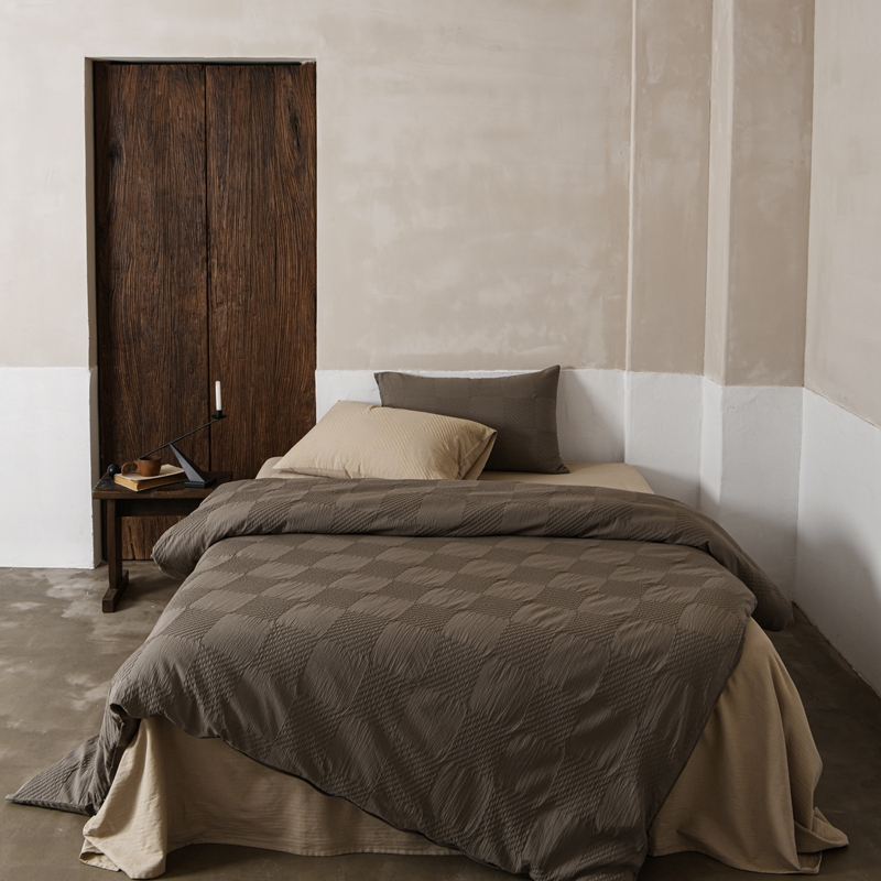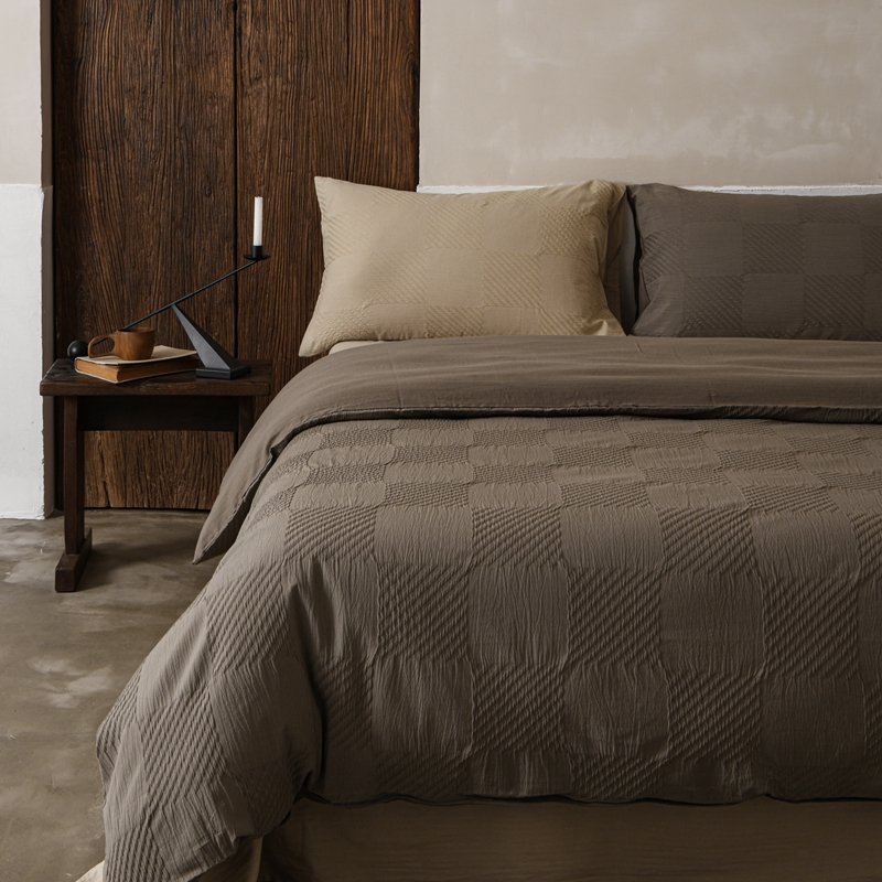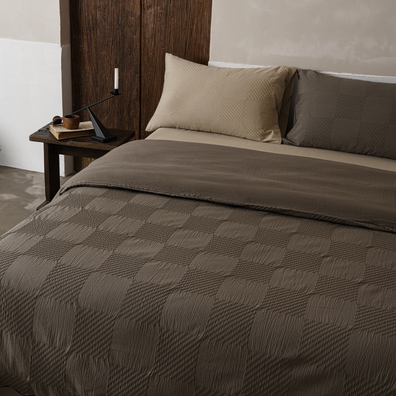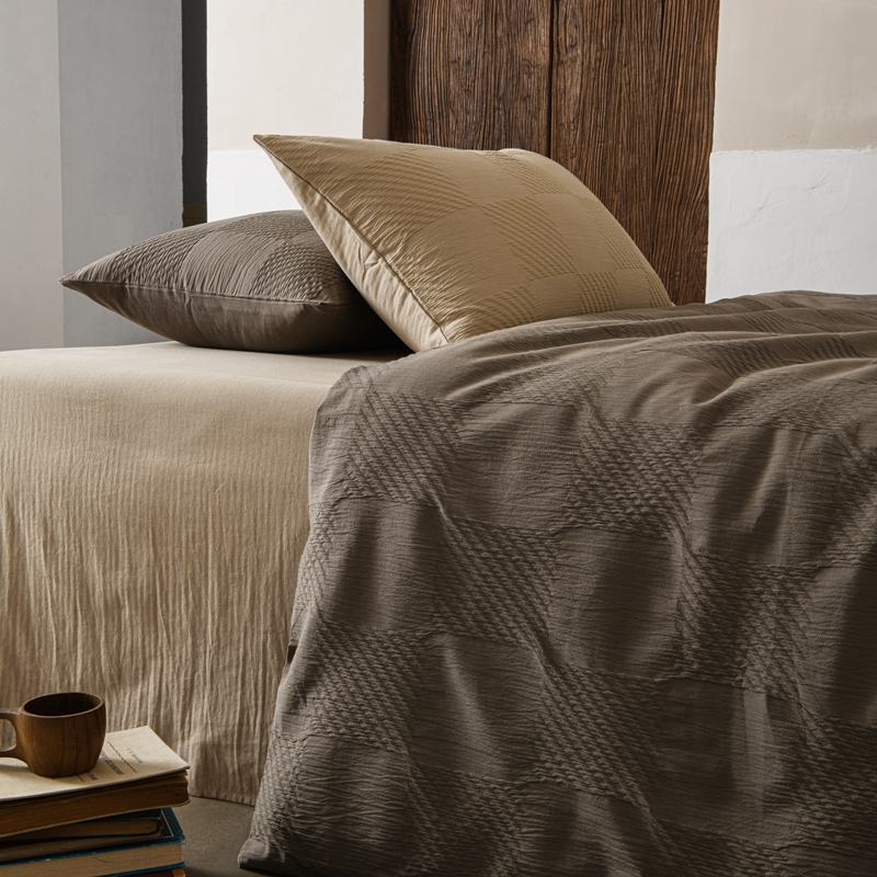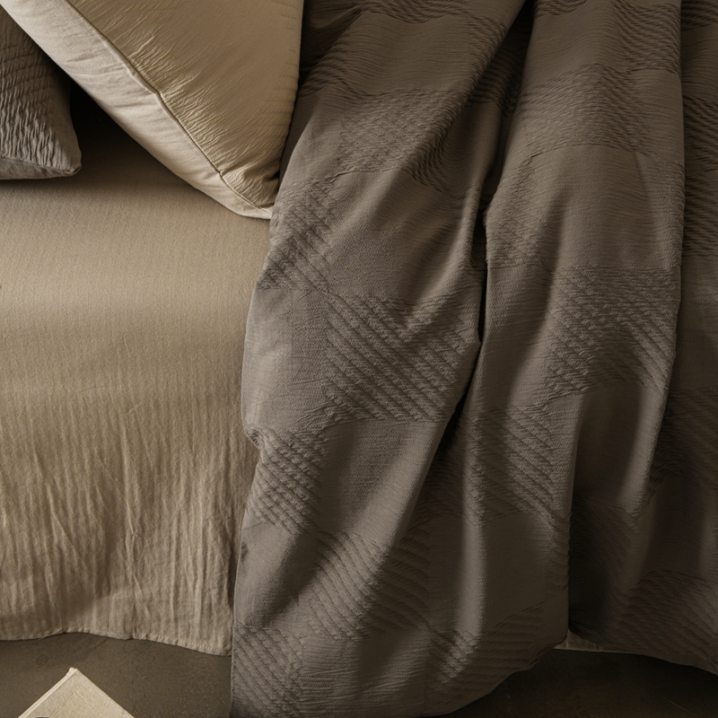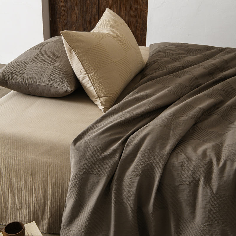 (总)简家居 2025新款亲肤舒适棉麻床盖三件套,棉麻提花