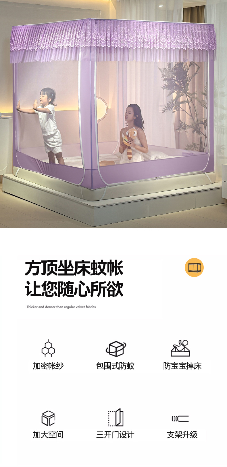 商品名称:青竹苑 2024新款内穿蕾丝花边坐床蚊帐 爱丽丝-暗夜紫