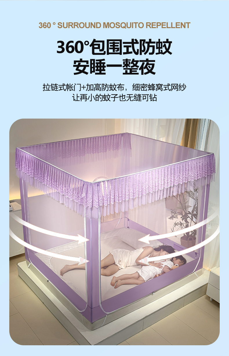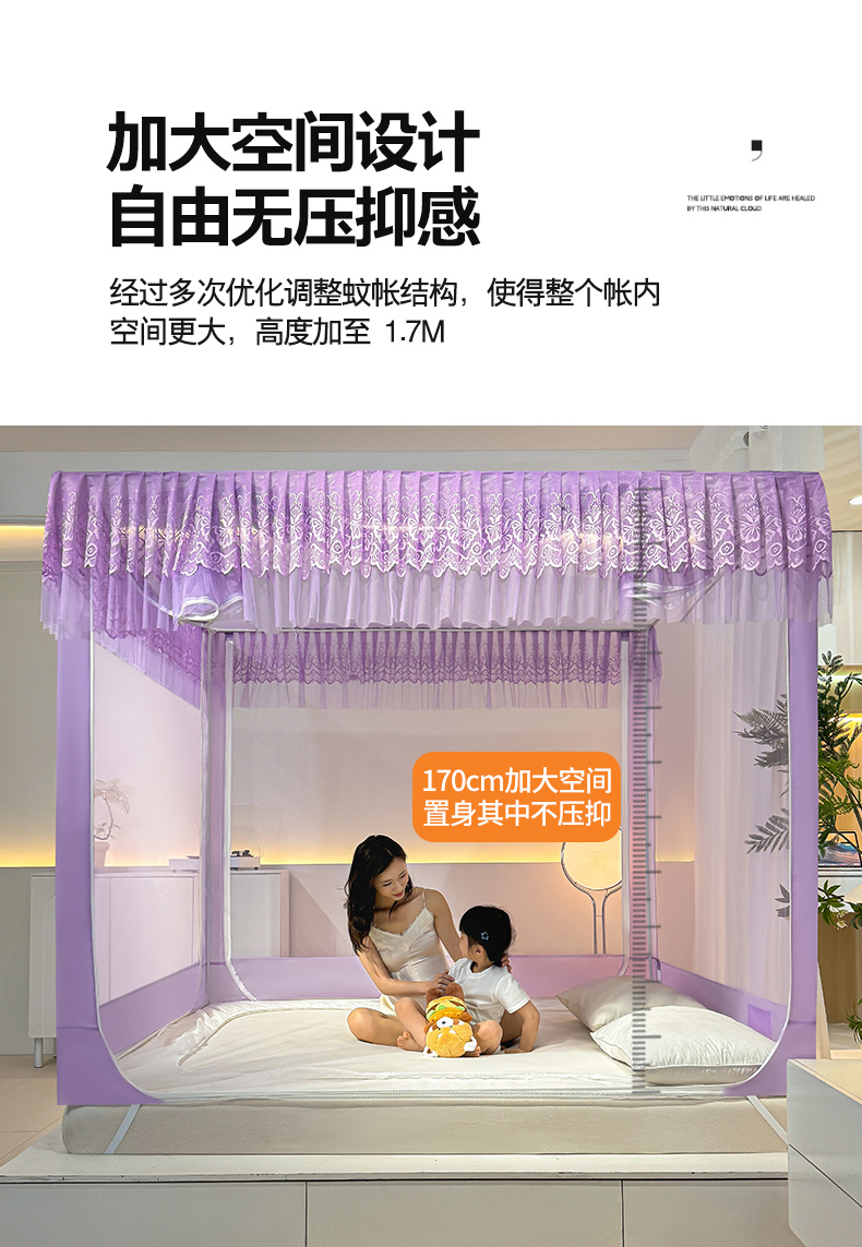 青竹苑 2024新款内穿蕾丝花边坐床蚊帐 爱丽丝-暗夜紫