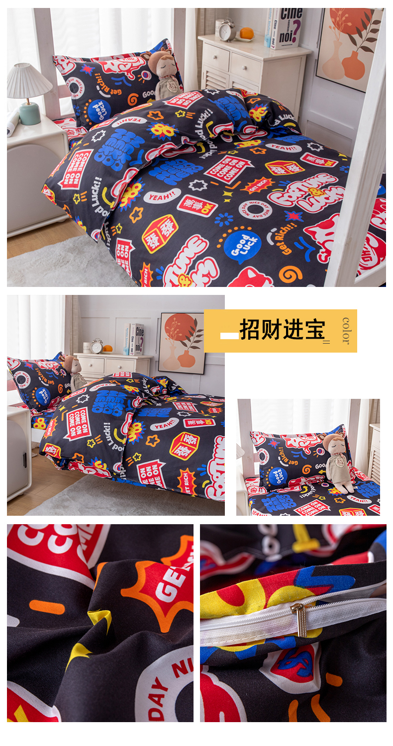 商品名称:乐居坊 2024新款亲肤棉 美棉 芦荟棉四件套 学生宿舍床(2月) 招财进宝