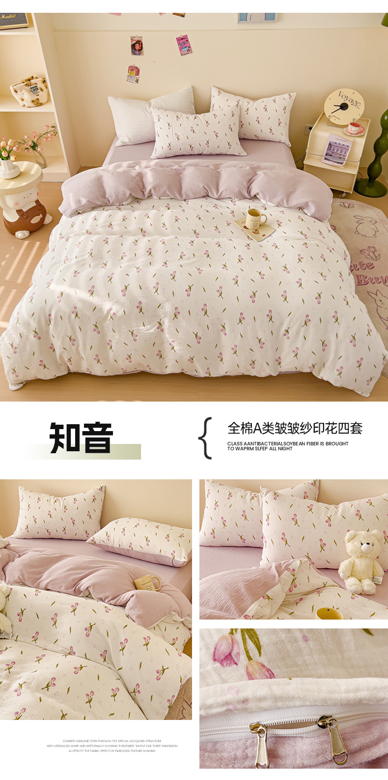 木楌 2025新款全棉A类皱皱纱印花四件套 知音