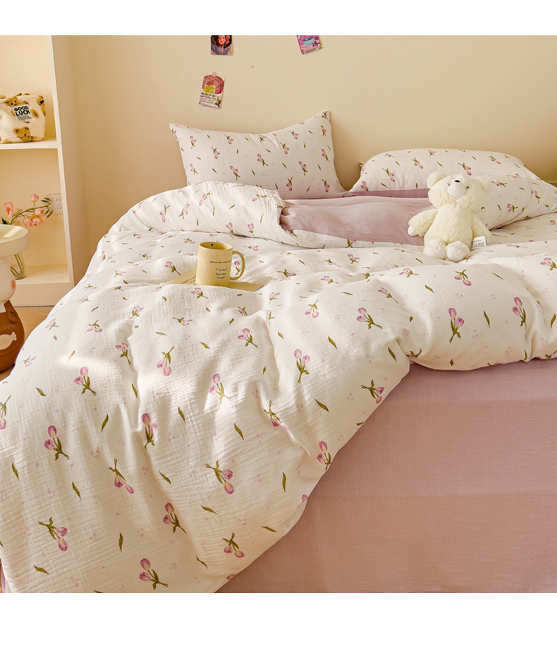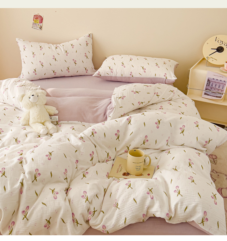 木楌 2025新款全棉A类皱皱纱印花四件套 春泥,春泥