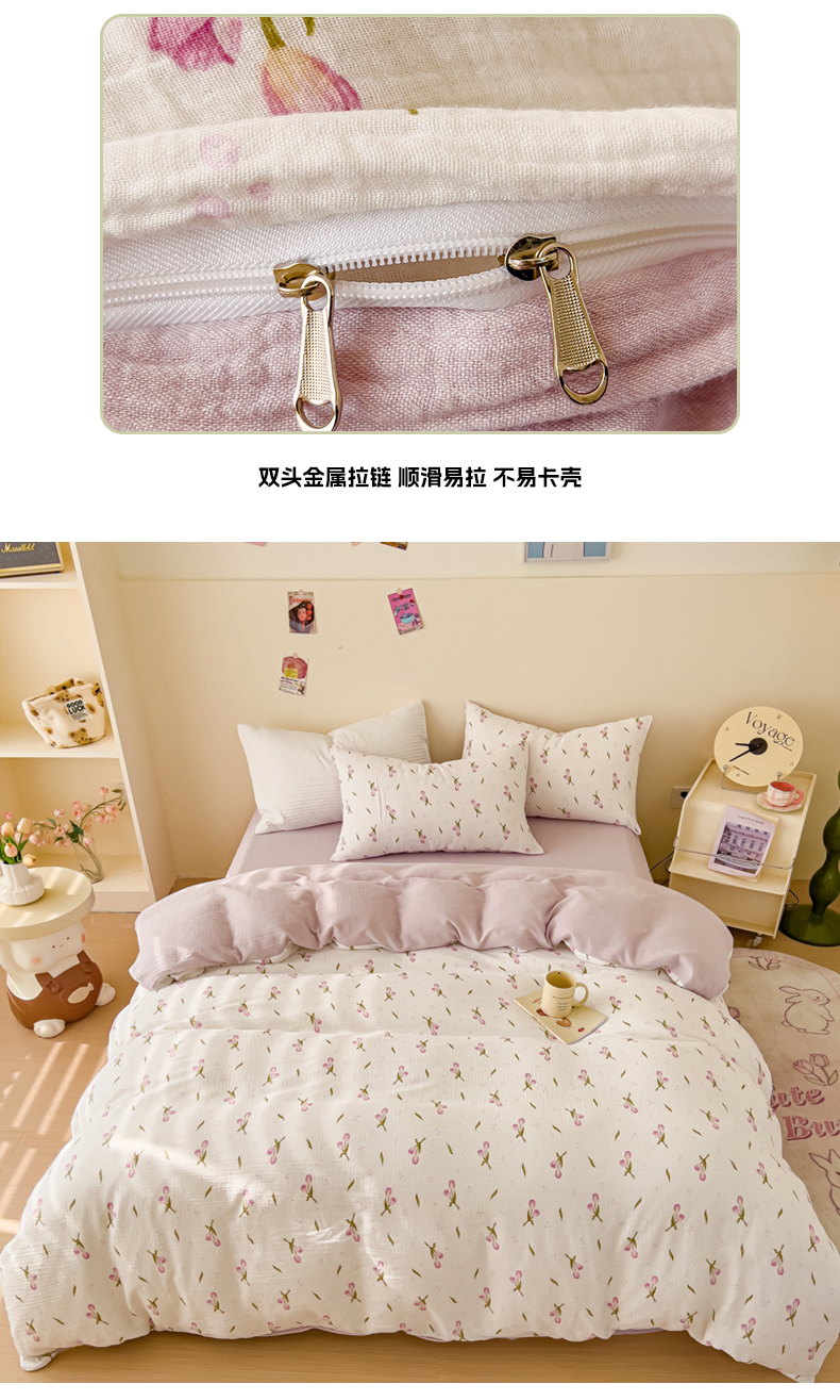 木楌 2025新款全棉A类皱皱纱印花四件套 小南国,小南国
