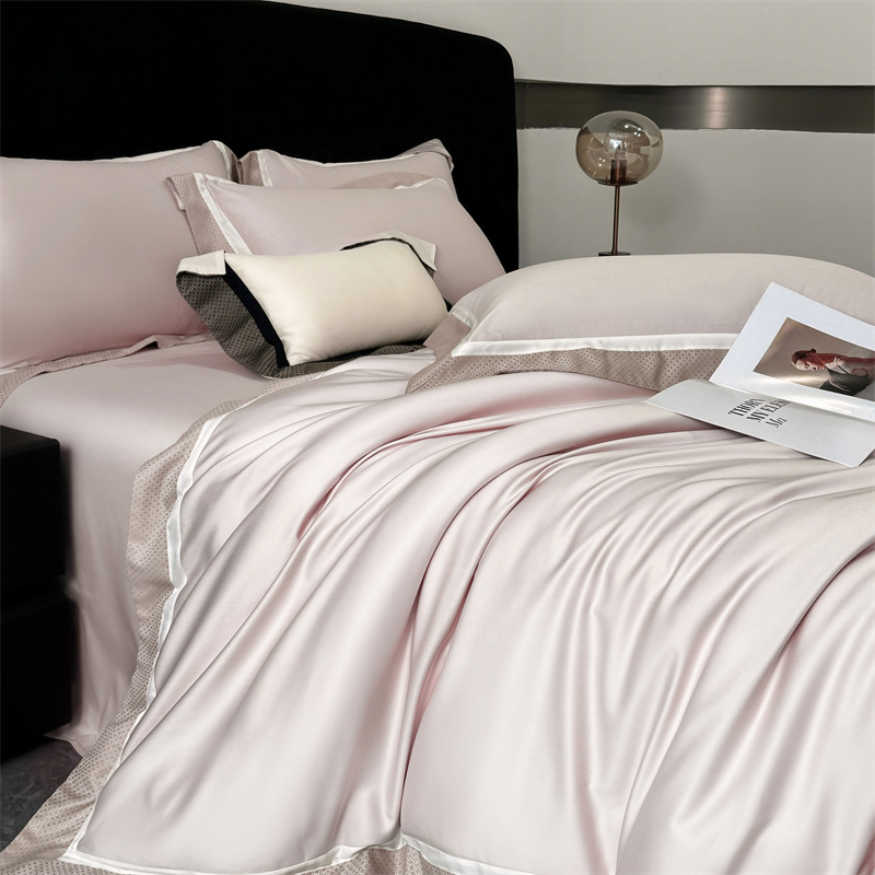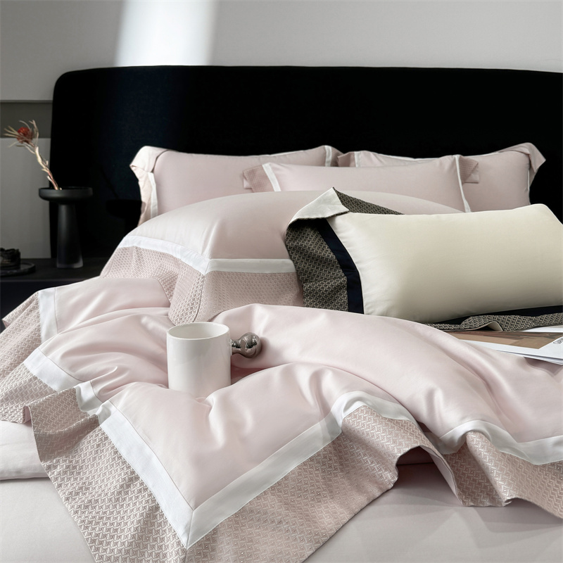 时亿 2024新款100支长绒棉拼接色织四件套-邂逅 邂逅温柔粉