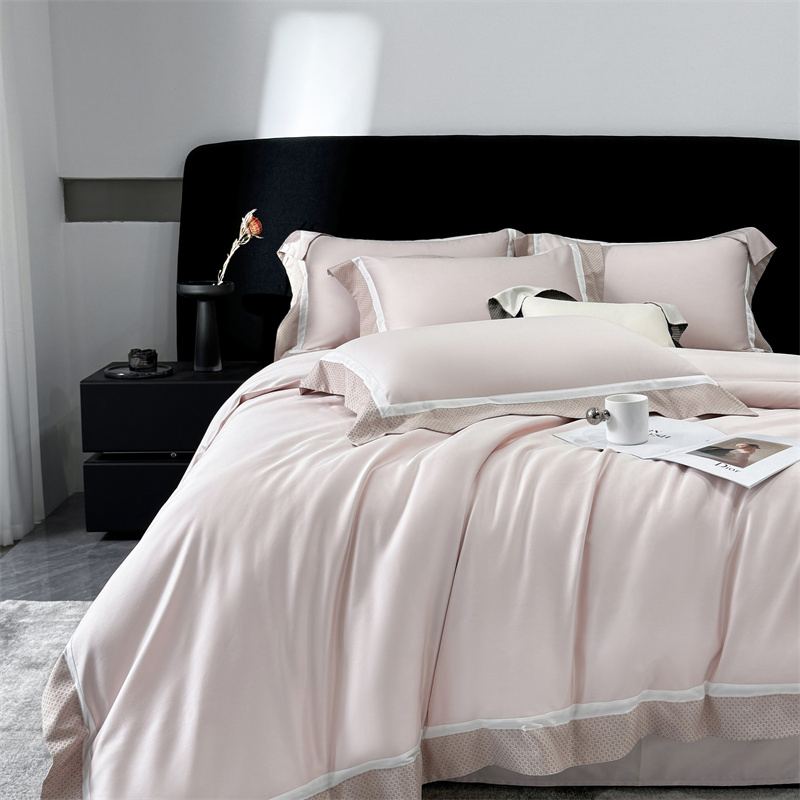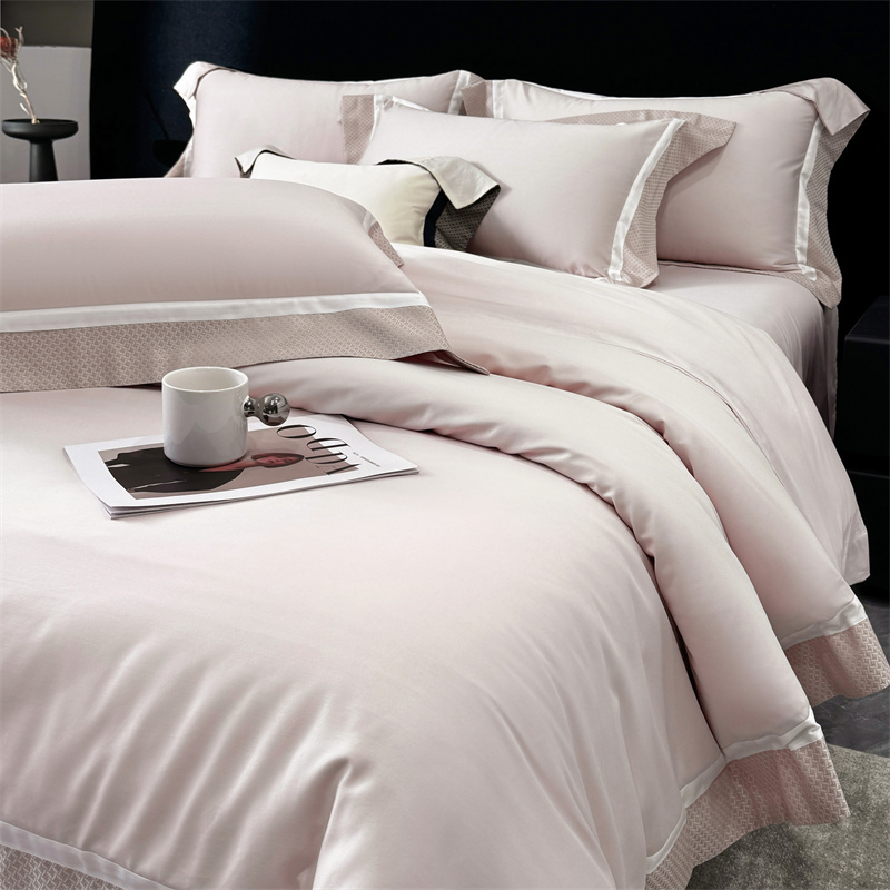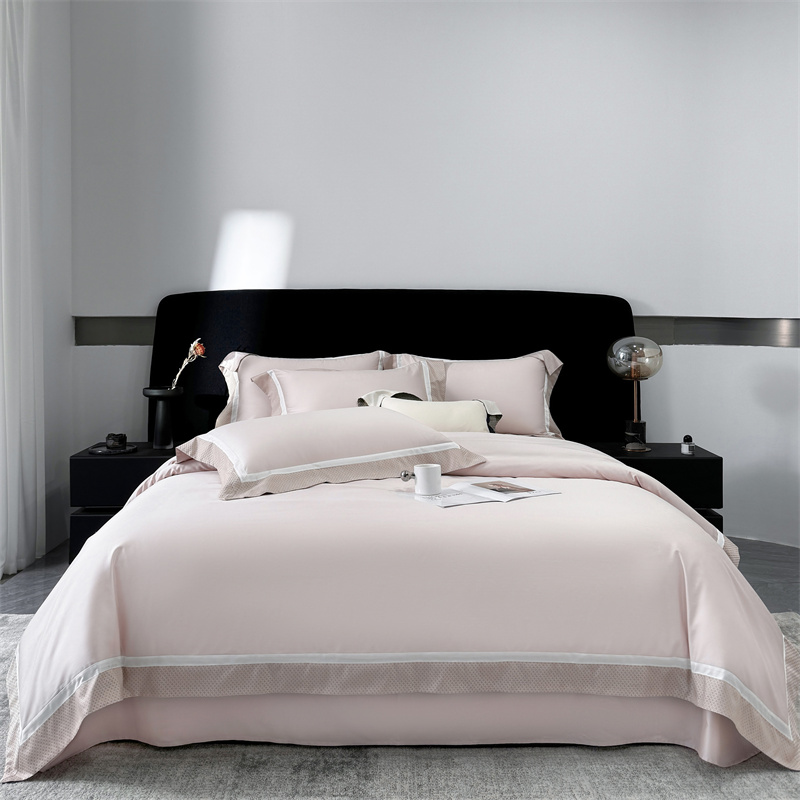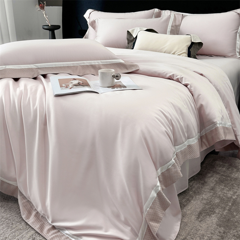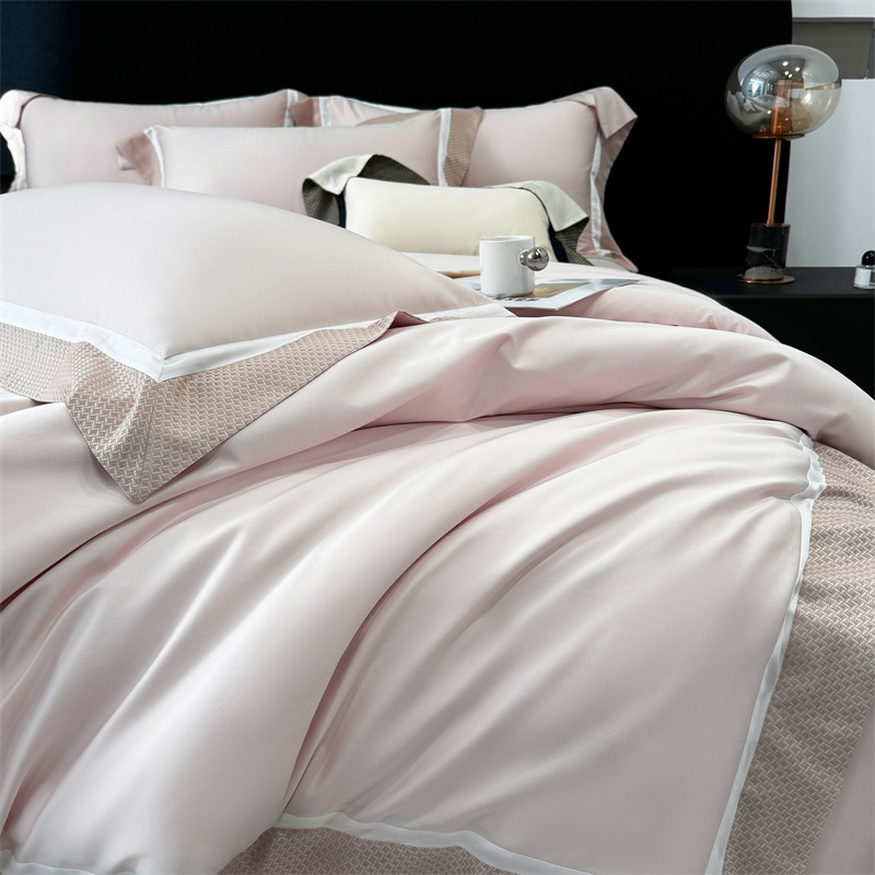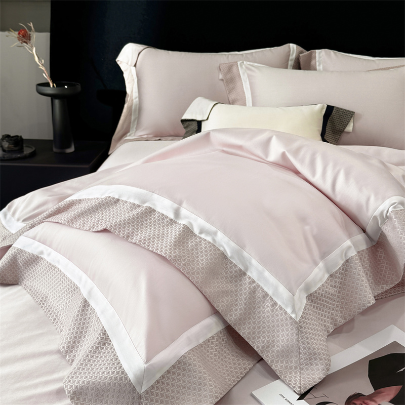 商品名称:时亿 2024新款100支长绒棉拼接色织四件套-邂逅 邂逅温柔粉