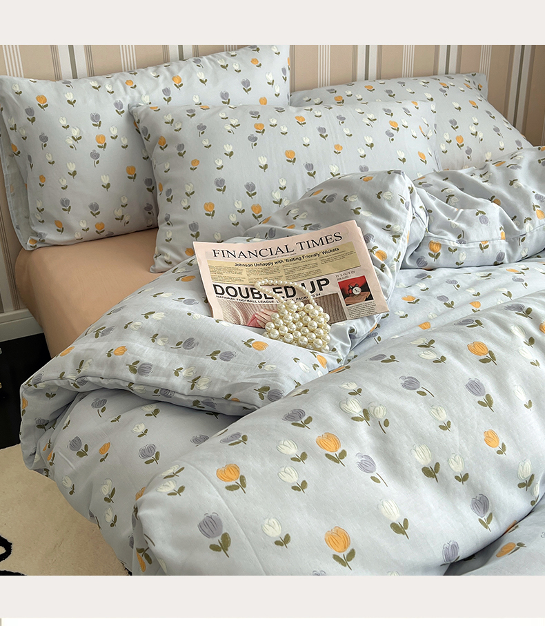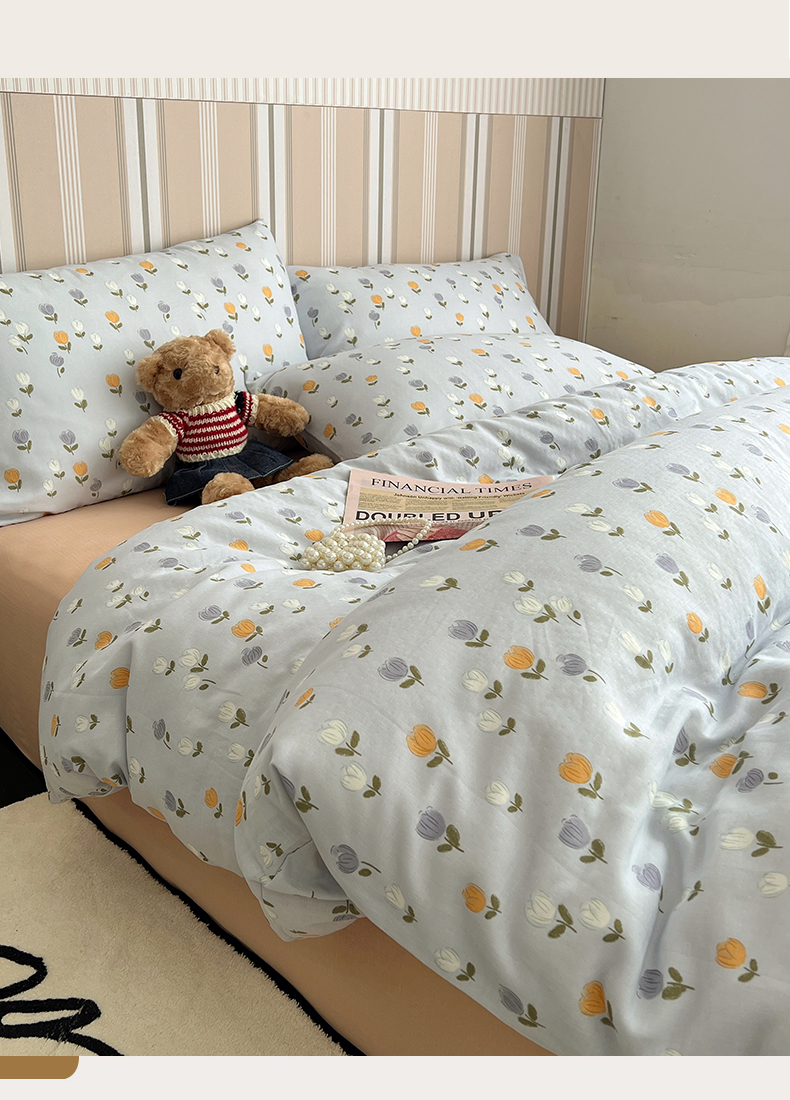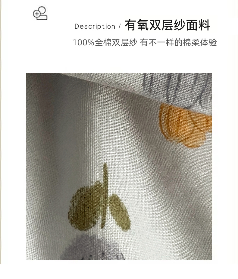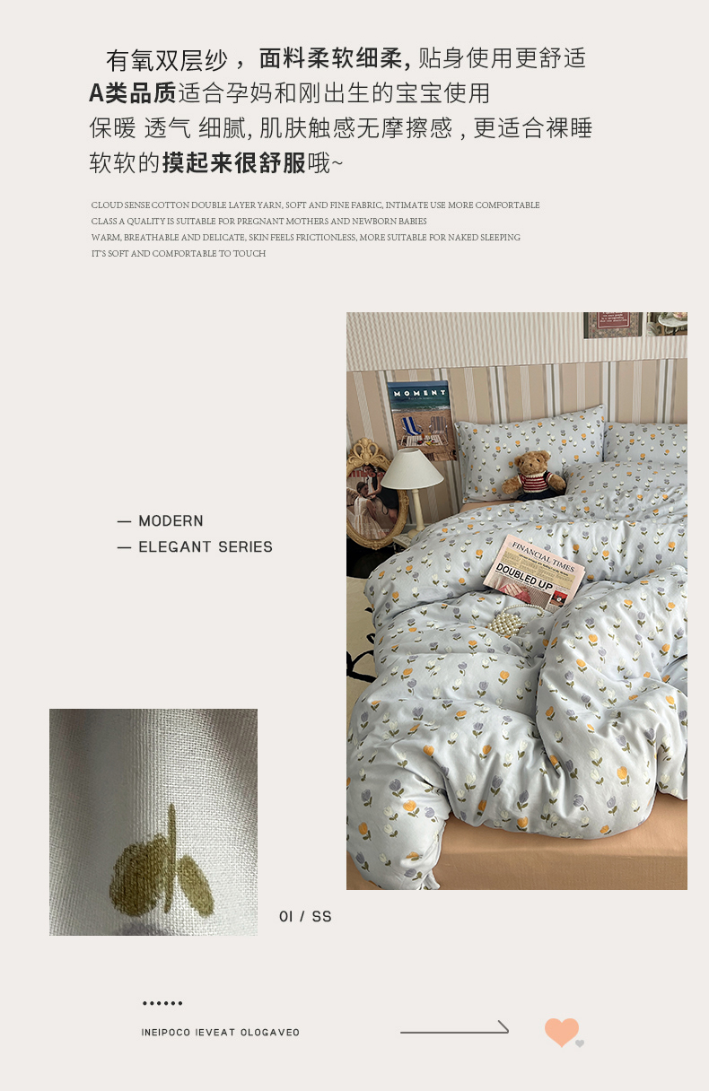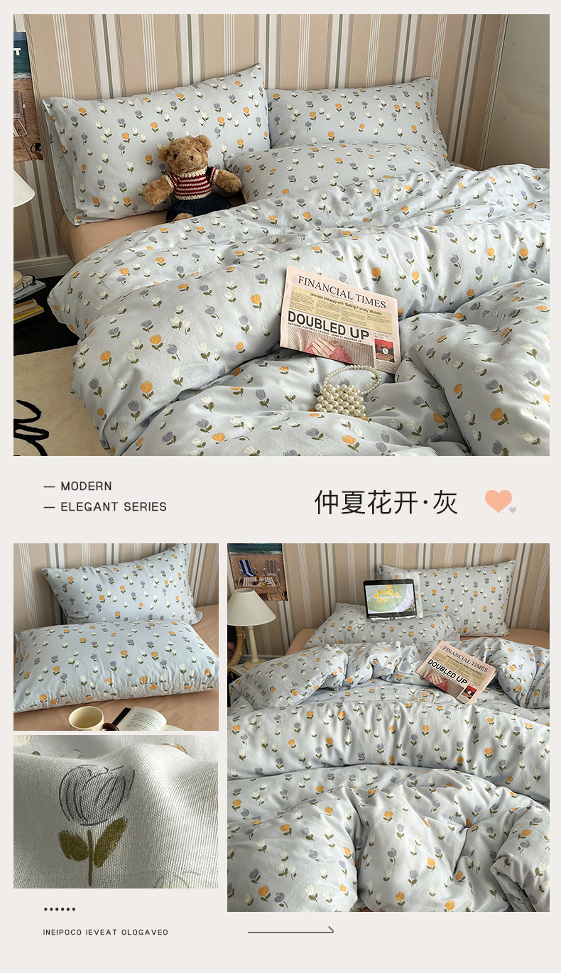 商品名称:卧趣2024新款A类全棉有氧双层纱四件套 仲夏花开灰