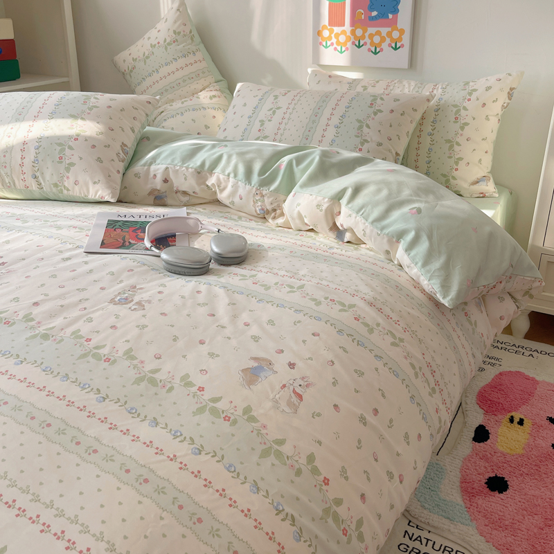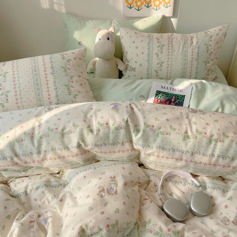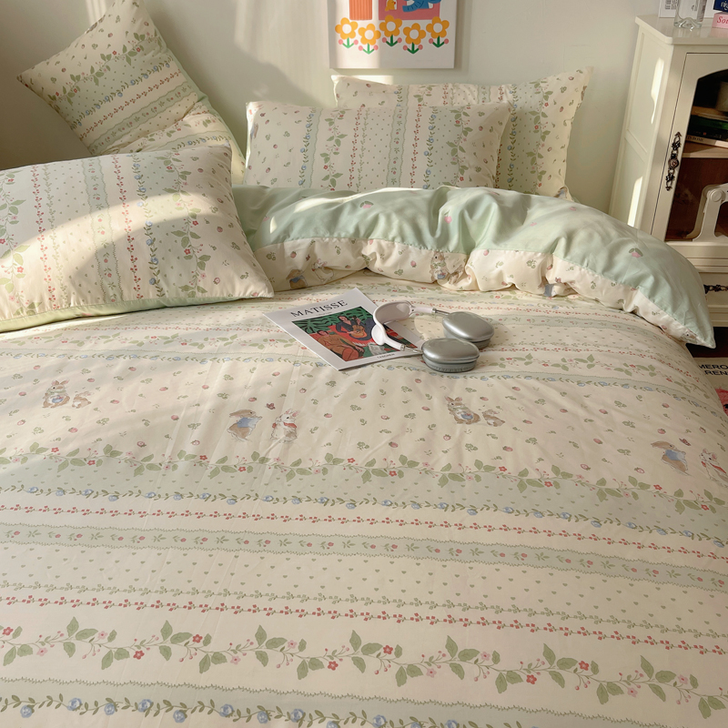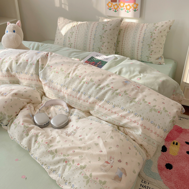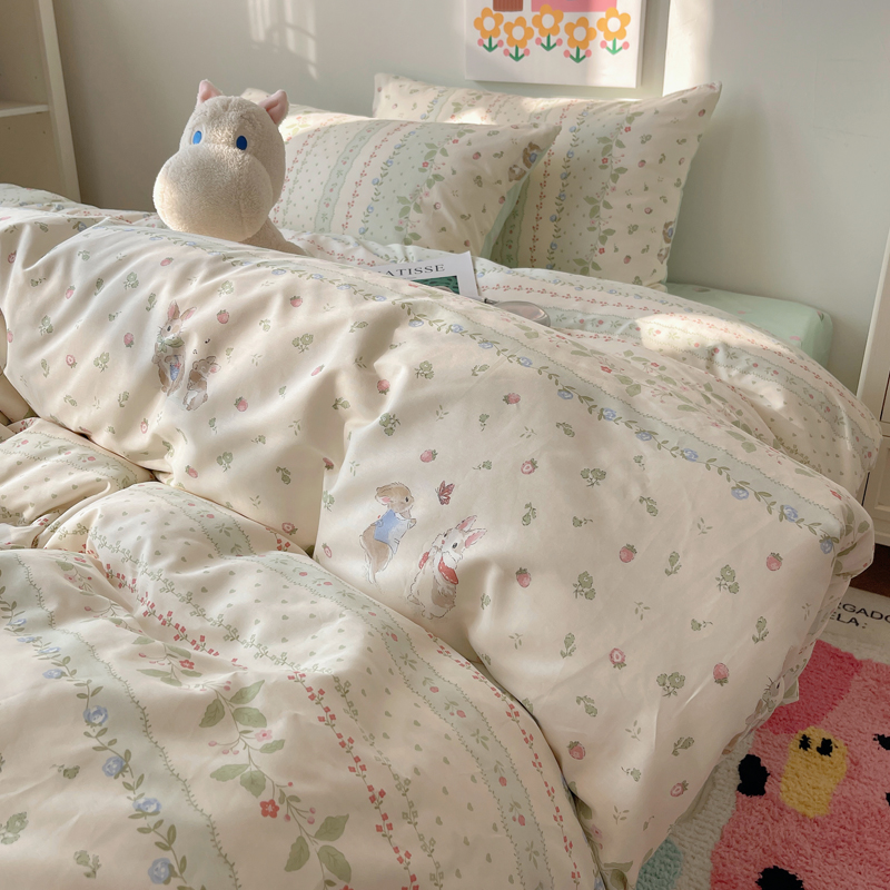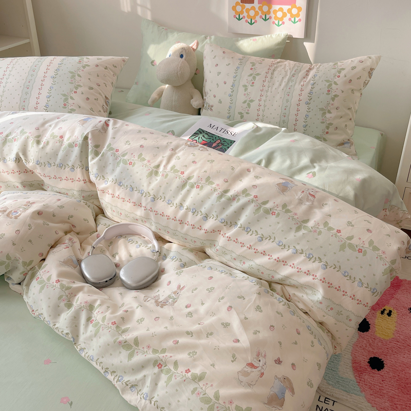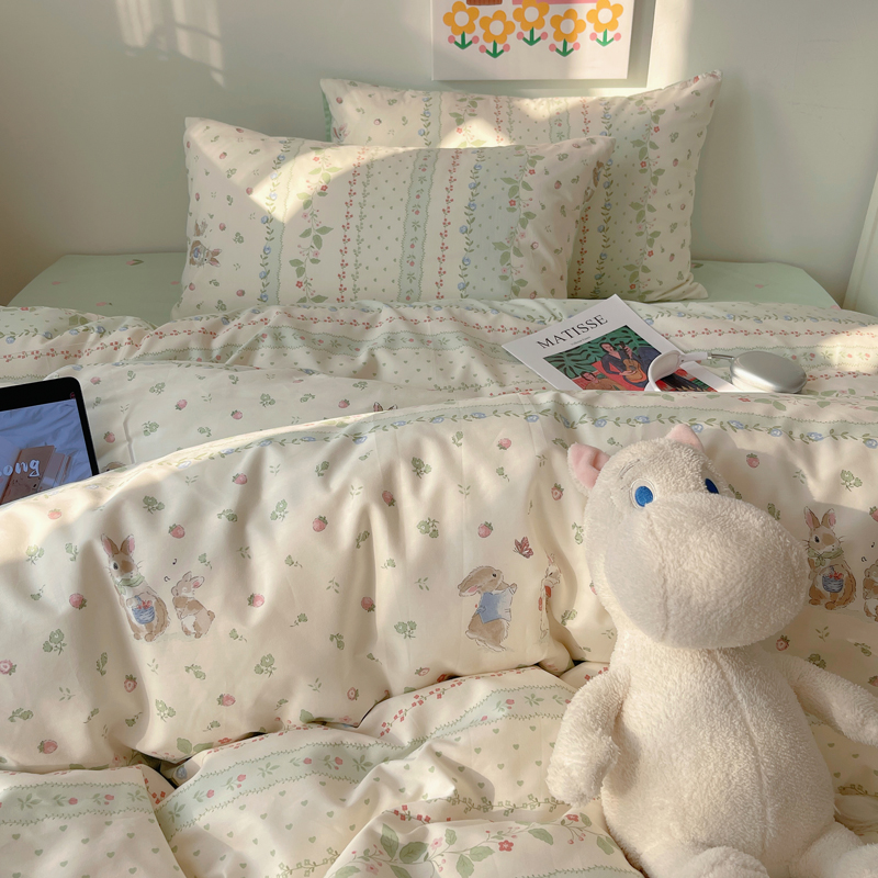 商品名称:桃喜 2024新款40支13372全棉卡通印花小清新四件套 伯爵兔