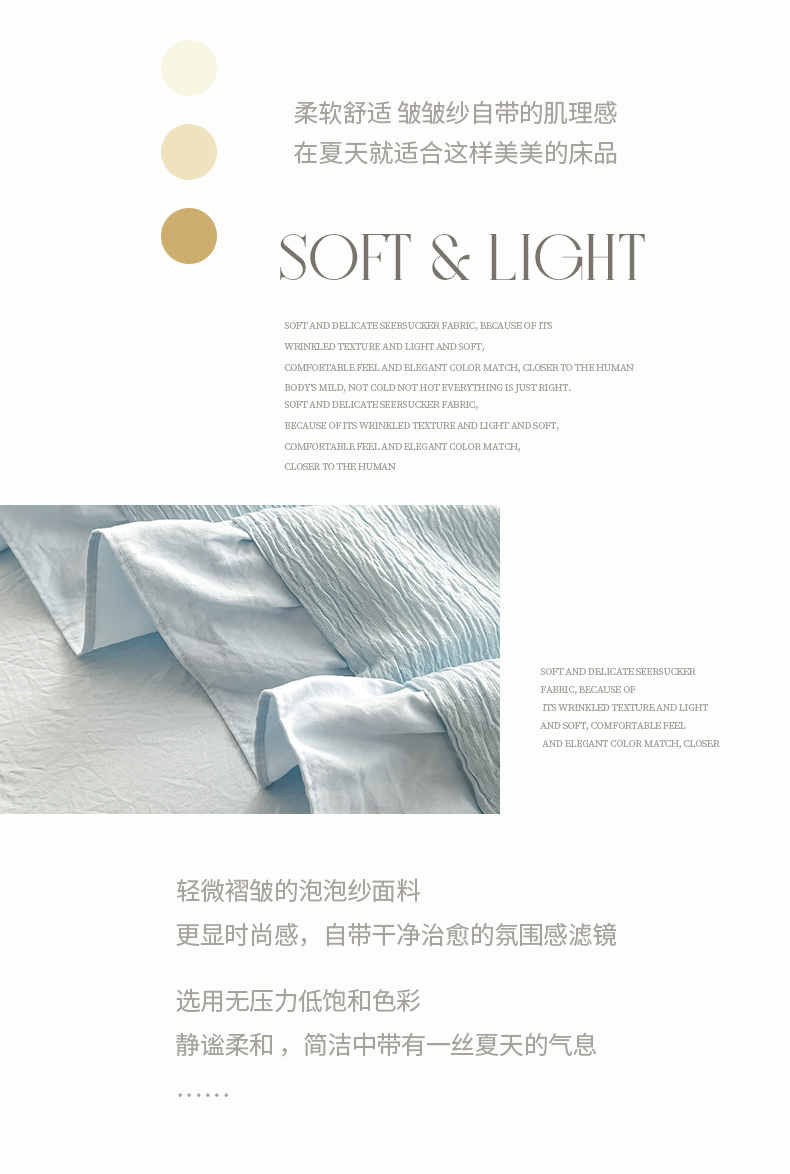 (总)ab家纺 2023新款泡泡纱水洗棉四件套,泡泡纱白灰,泡泡纱薄荷,泡泡纱高级灰,泡泡纱姜黄,泡泡纱浅豆沙,泡泡纱蔚蓝,泡泡纱香叶粉,泡泡纱紫灰