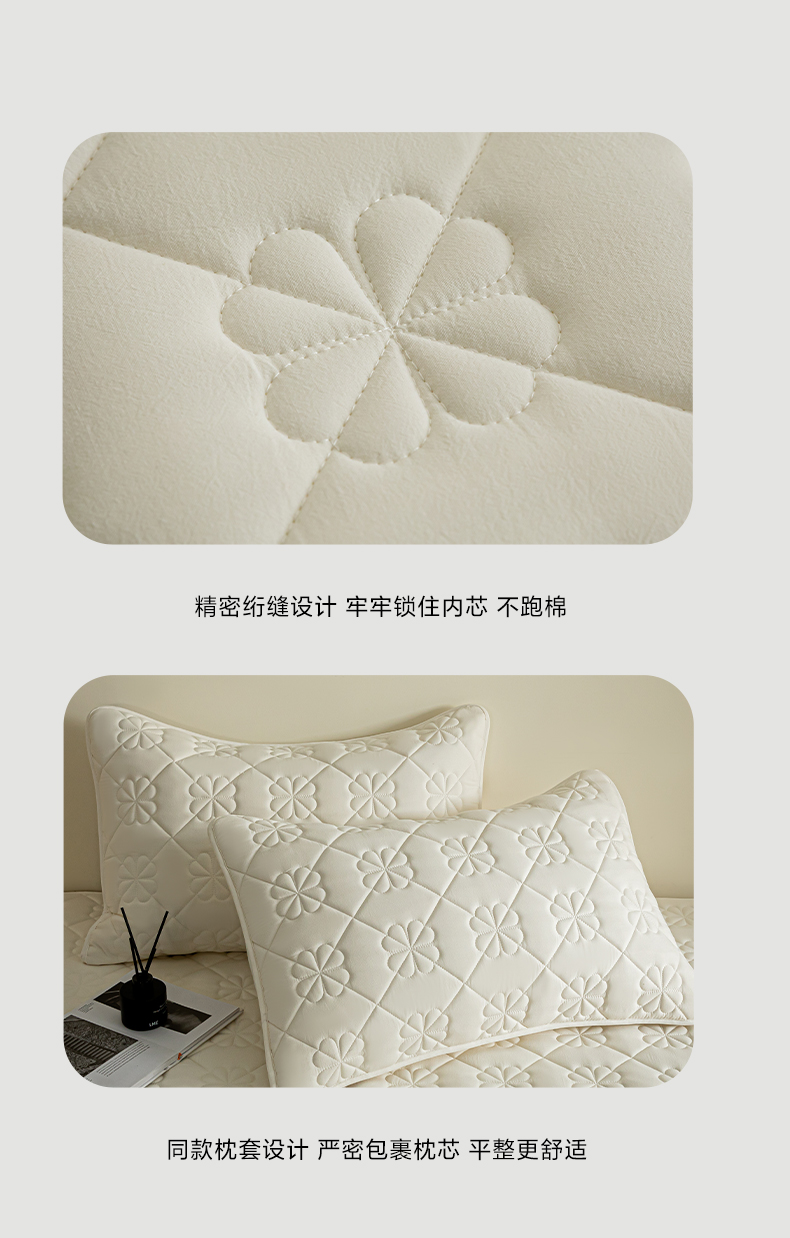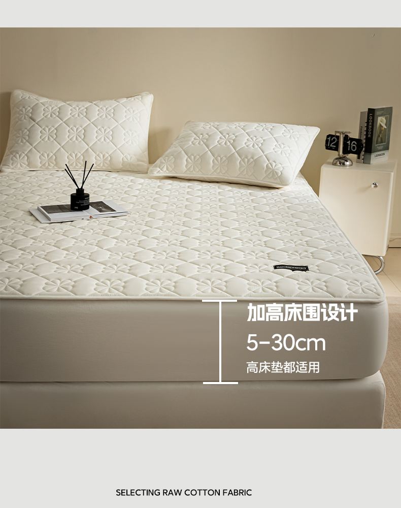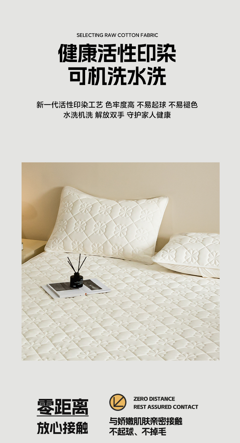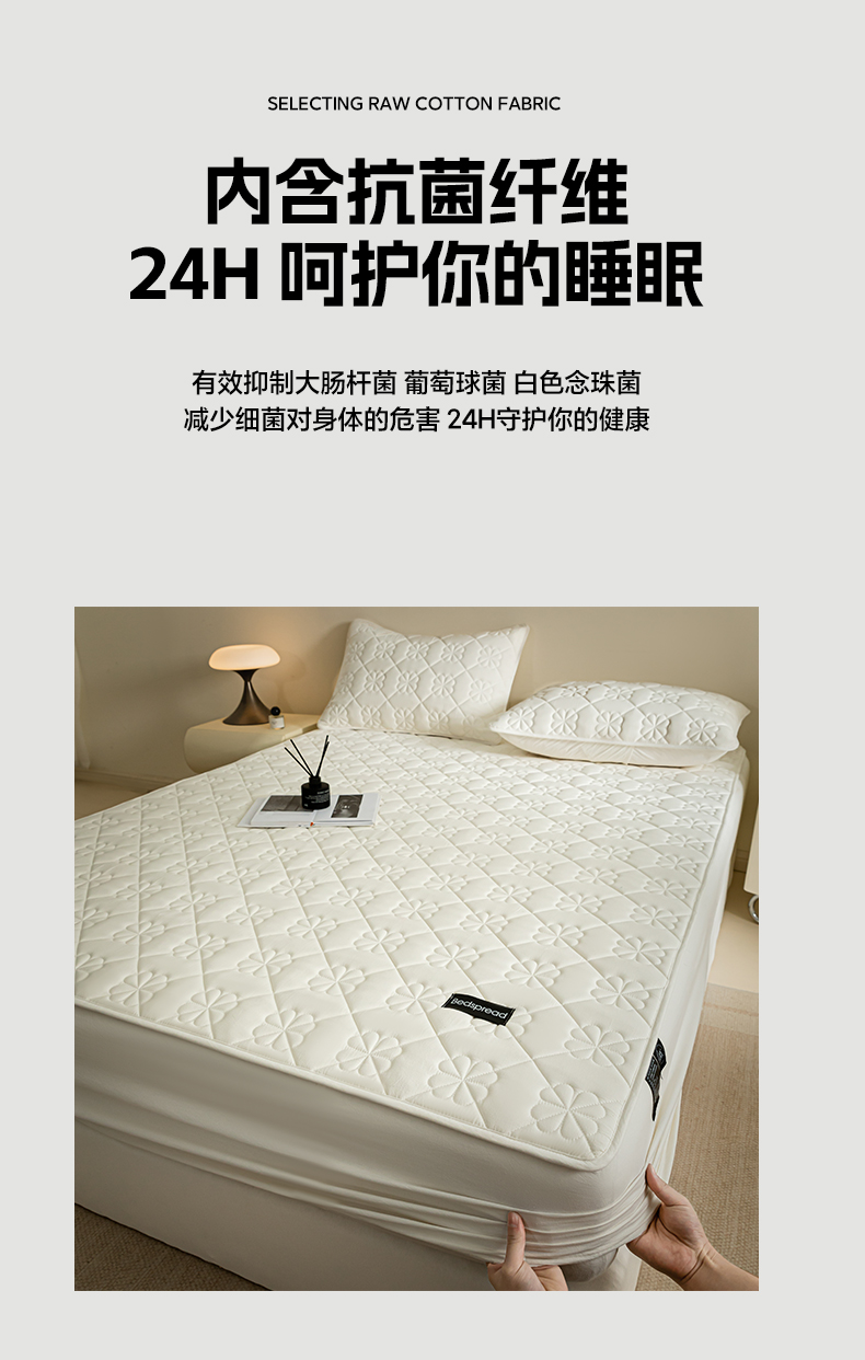 芬晴家纺 2024新款A类全棉水洗棉抗菌床笠夹棉床笠奥兰 奥兰-奶白