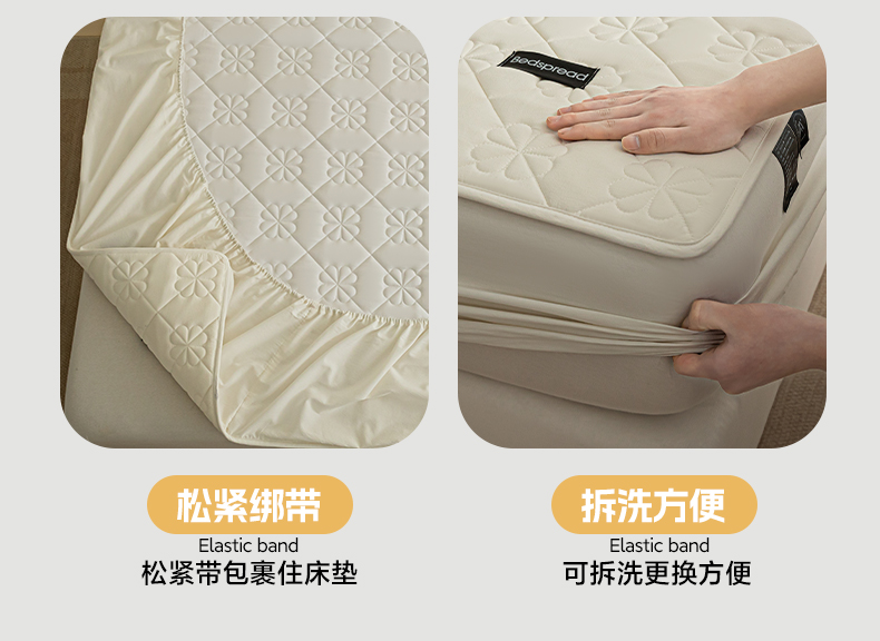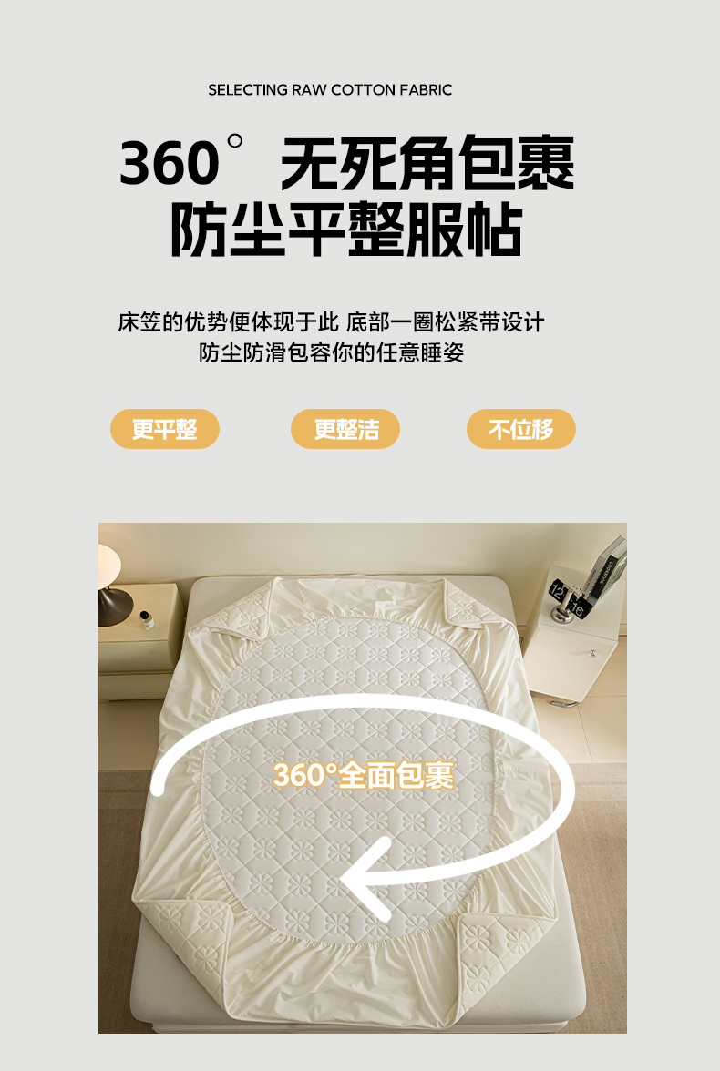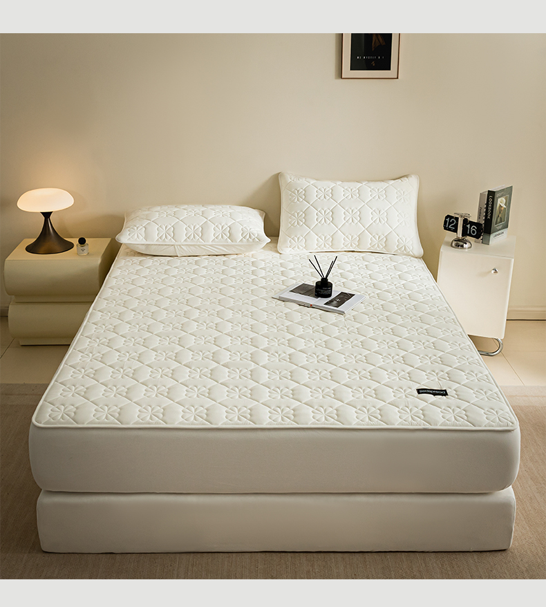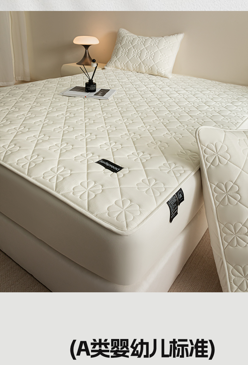 芬晴家纺 2024新款A类全棉水洗棉抗菌床笠夹棉床笠奥兰 奥兰-奶白