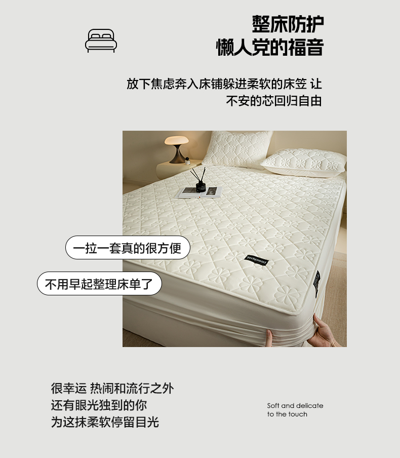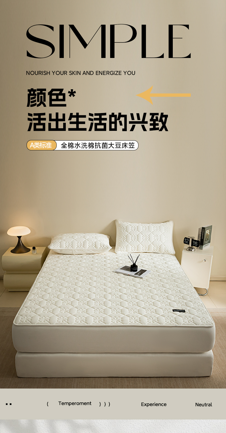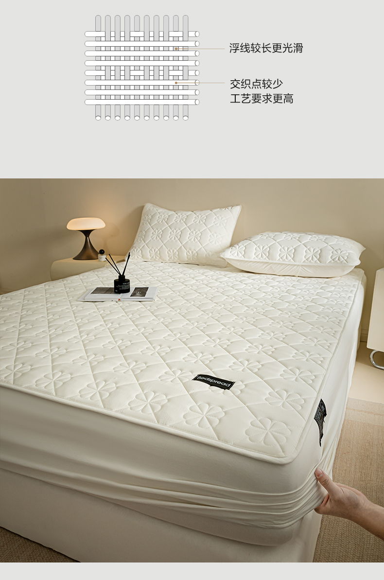 • 91家纺网 家纺一手货源 找家纺 芬晴家纺 2024新款A类全棉水洗棉抗菌床笠夹棉床笠奥兰 奥兰-奶白