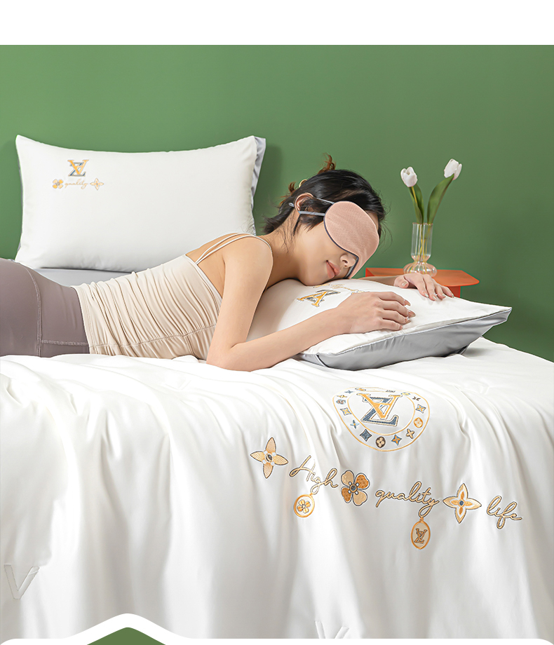(总)梦镜 2025新款A类母婴级凉感夏被四件套-微笑,微笑 -天青色,微笑-天蓝色,微笑-珍珠白,微笑-香槟色