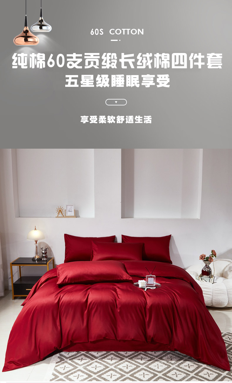 当前位置: 91家纺网 > 商品网购 > 床品套件 > 四件套 > 全棉普通四件套 > 晶缦家纺 2025新款全棉60支贡缎长绒棉纯色多规格四件套和单品-琅夕系列 四件套 琅夕-酒红色