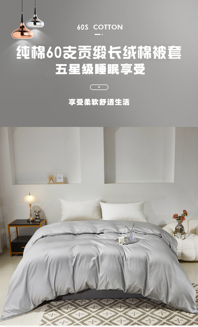 晶缦家纺 2024新款全棉60支贡缎长绒棉纯色多规格四件套和单品-琅夕系列 单被套 琅夕-奥丁灰