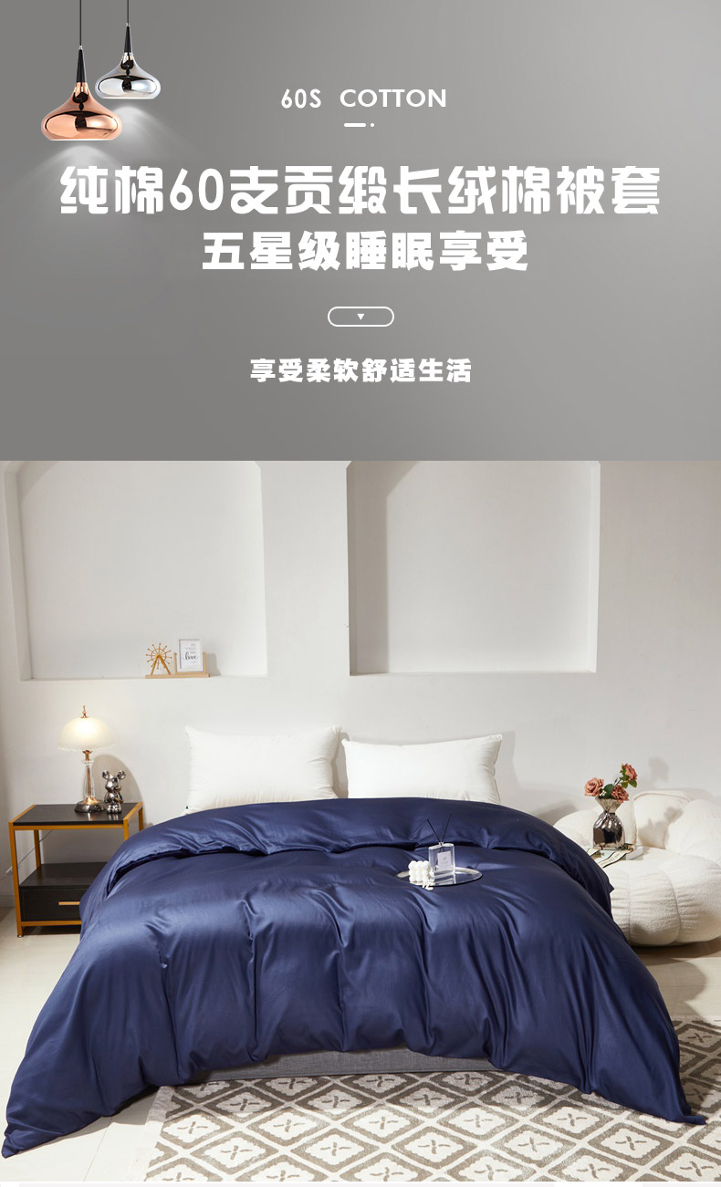 商品名称:晶缦家纺 2024新款全棉60支贡缎长绒棉纯色多规格四件套和单品-琅夕系列 单被套 琅夕-丈青色