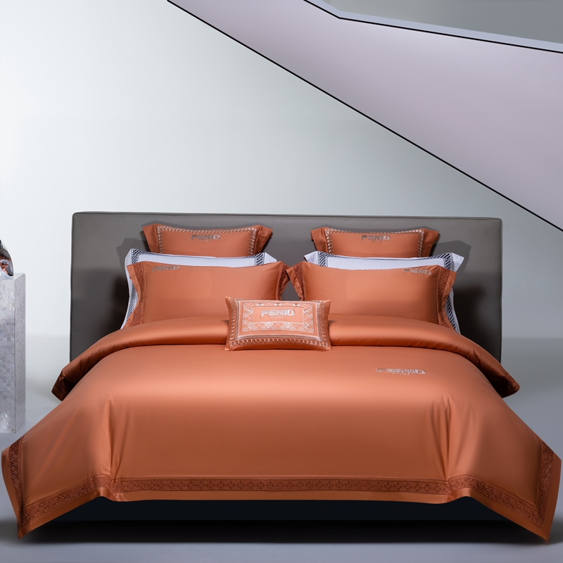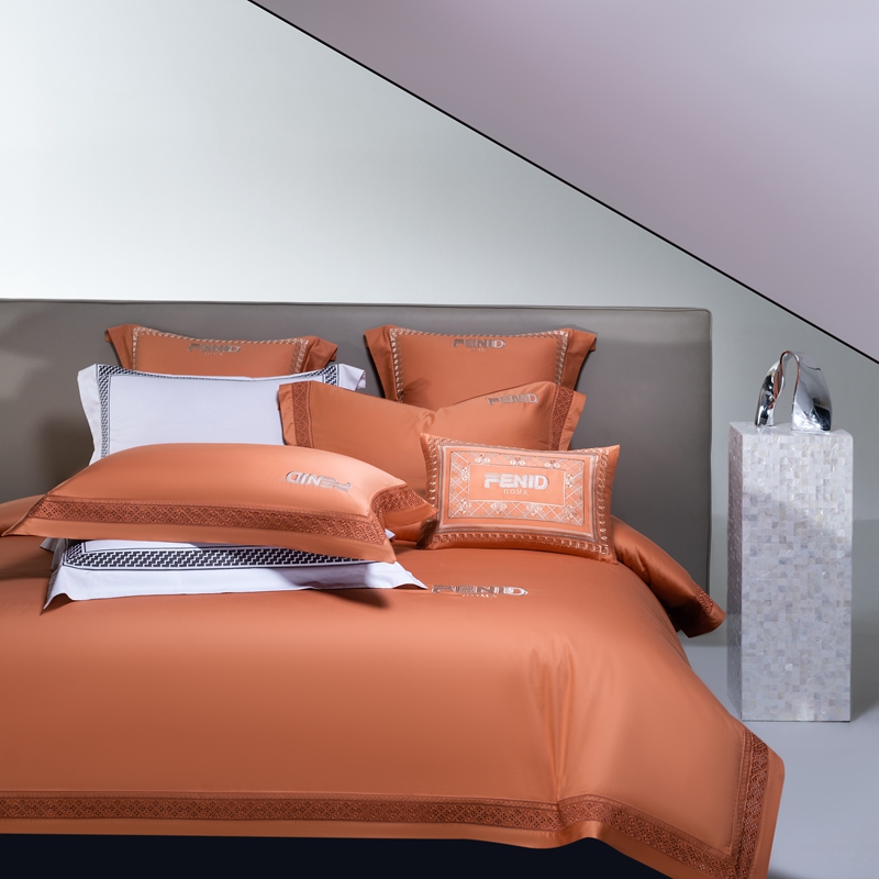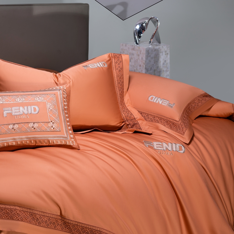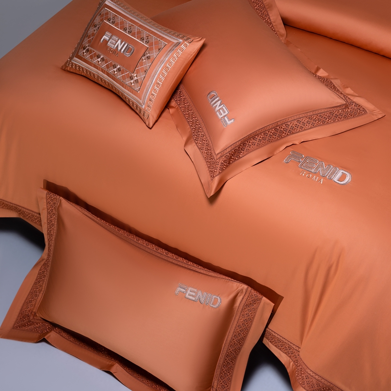 高大尚2025春夏新品长绒棉高端绣花四件套- 芬迪 芬迪-爱玛橙