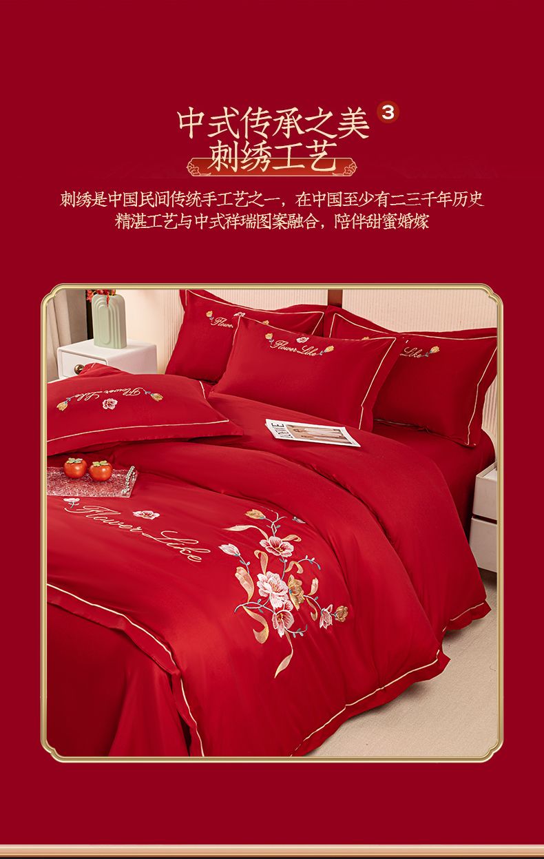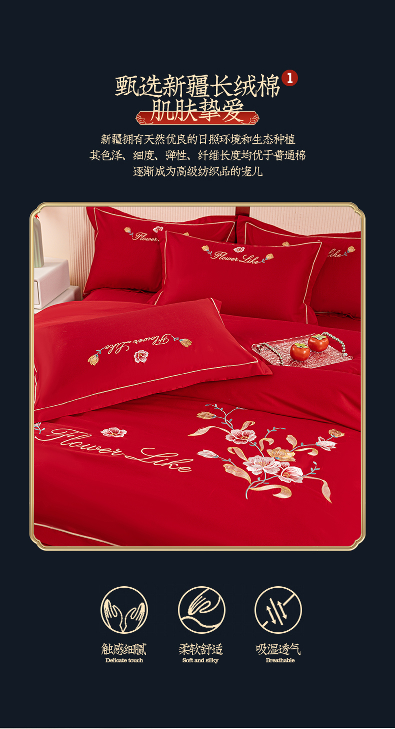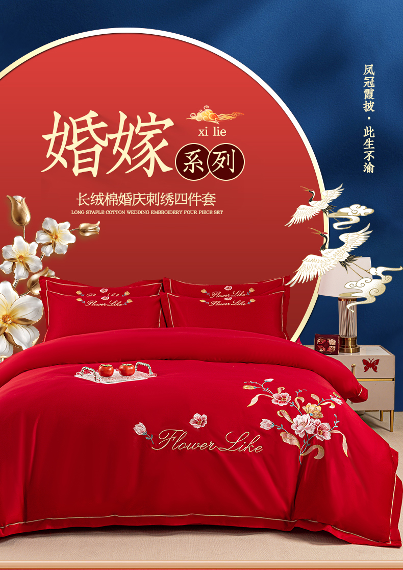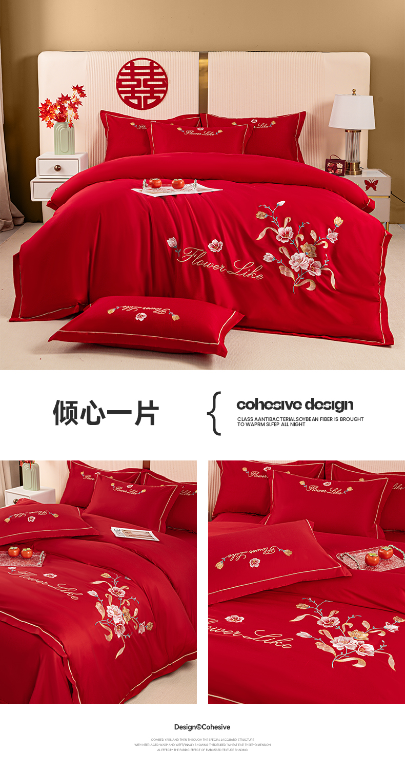 (总)银石 2024新款60新疆长绒棉大红婚庆绣花四件套,倾心一片,山河见证,心心相印,永结同心,浪漫时刻,吉祥如意,龙凤报喜