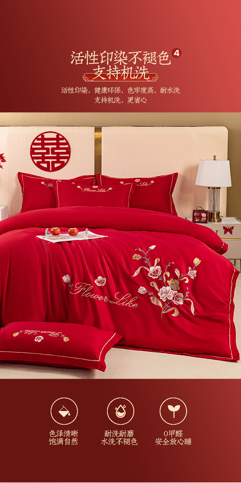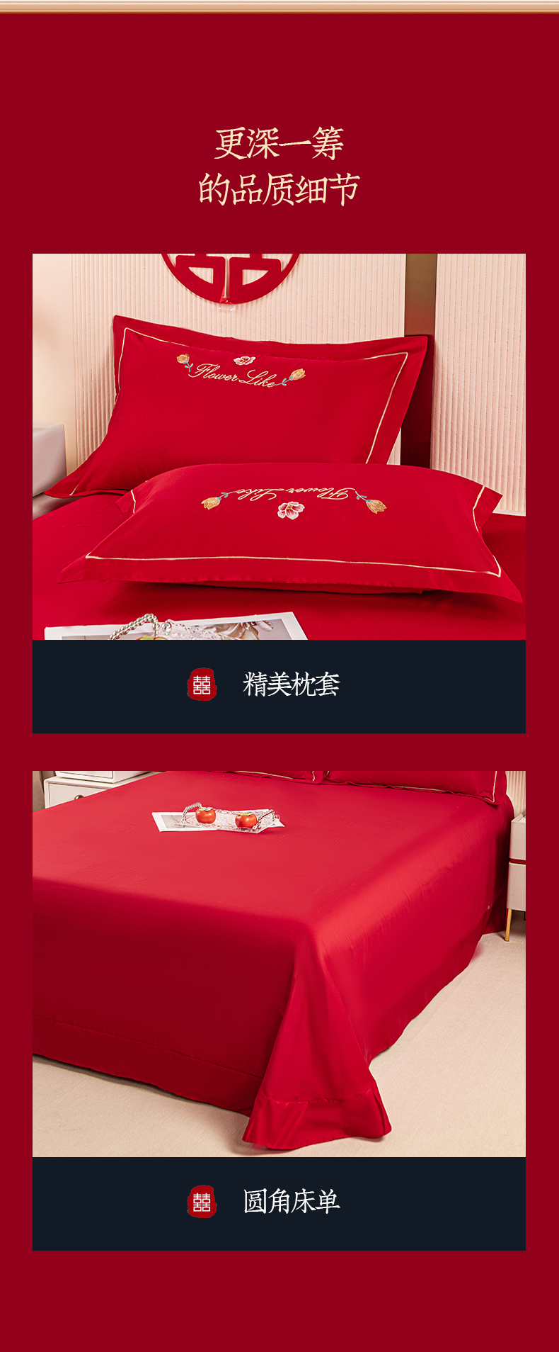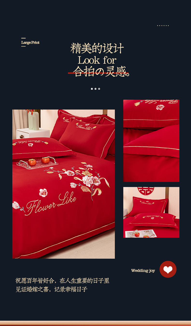 (总)银石 2024新款60新疆长绒棉大红婚庆绣花四件套,倾心一片,山河见证,心心相印,永结同心,浪漫时刻,吉祥如意,龙凤报喜