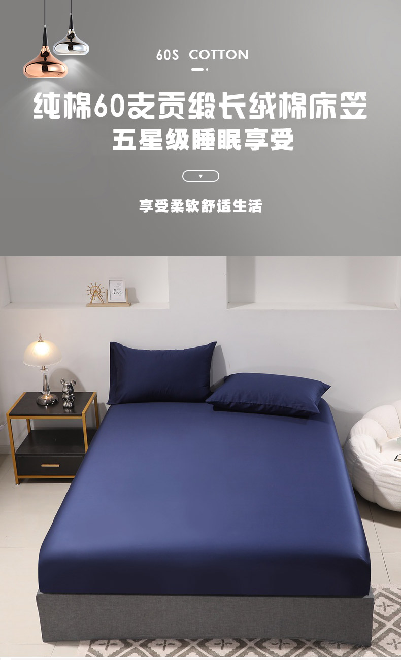 晶缦家纺 2024新款全棉60支贡缎长绒棉纯色多规格四件套和单品-琅夕系列 单床笠 琅夕-丈青色