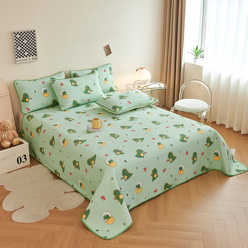 • 91家纺网 家纺一手货源 找家纺 莎果 2024新款正面纯棉绗缝床盖 恐龙宝宝