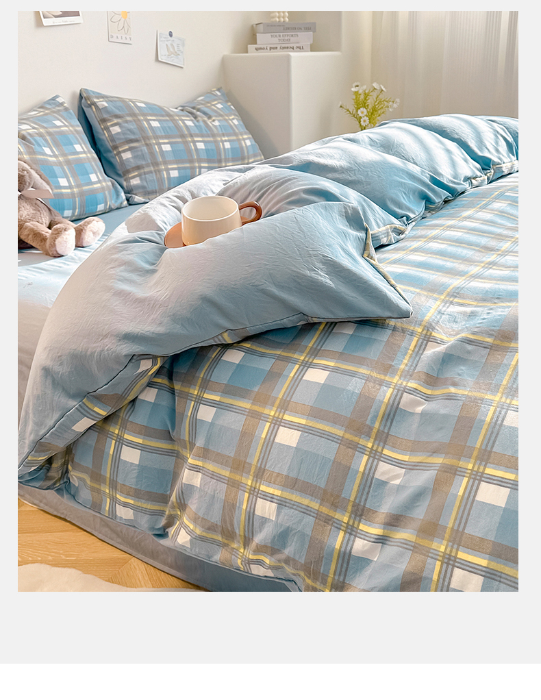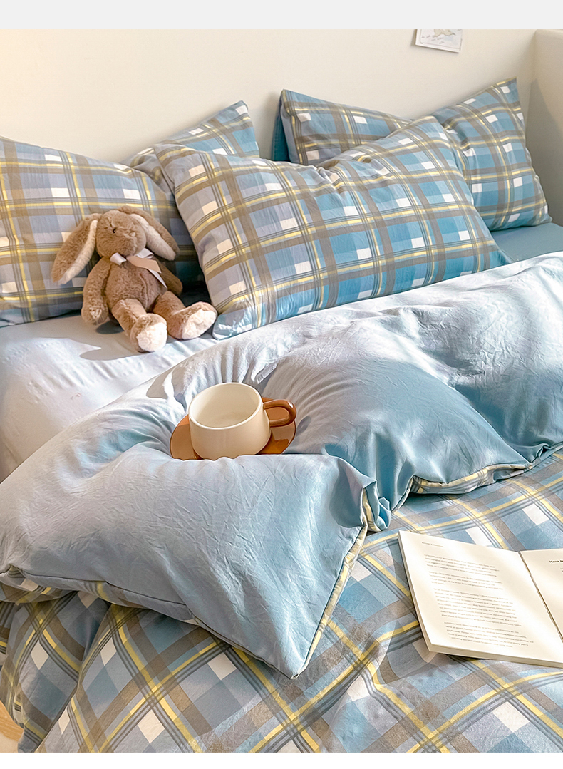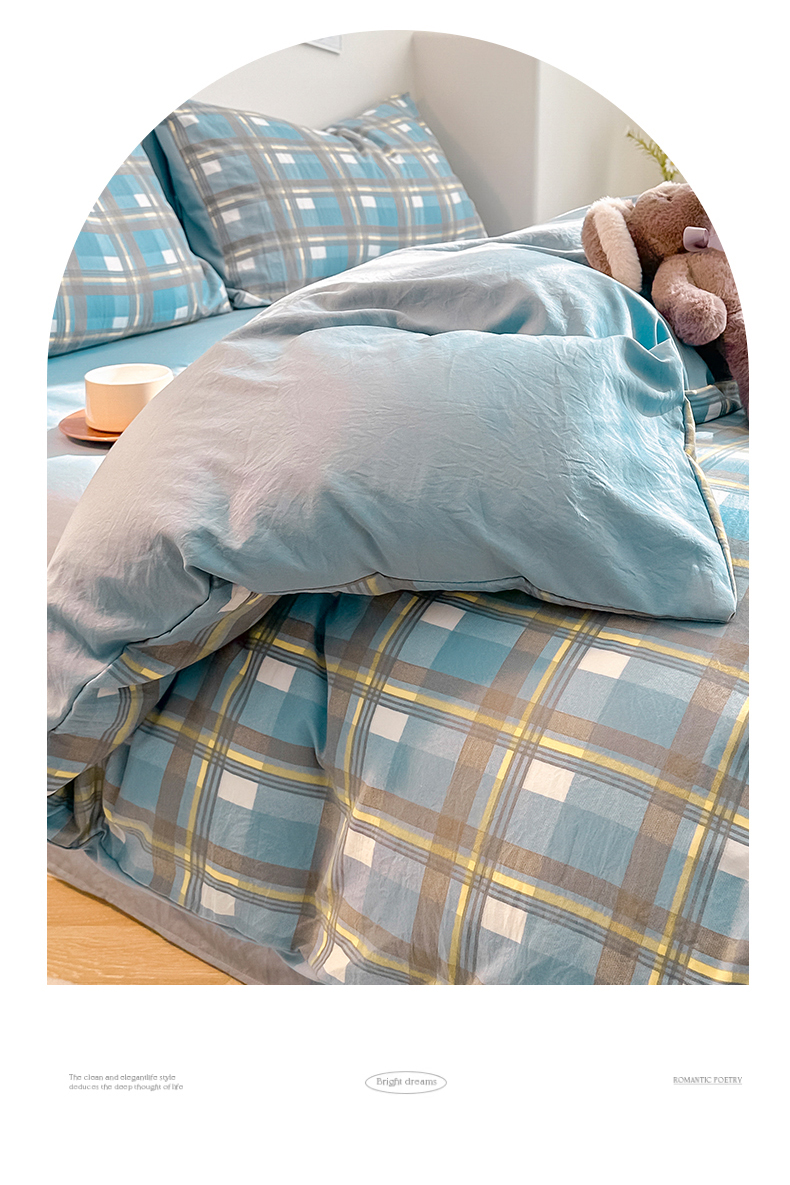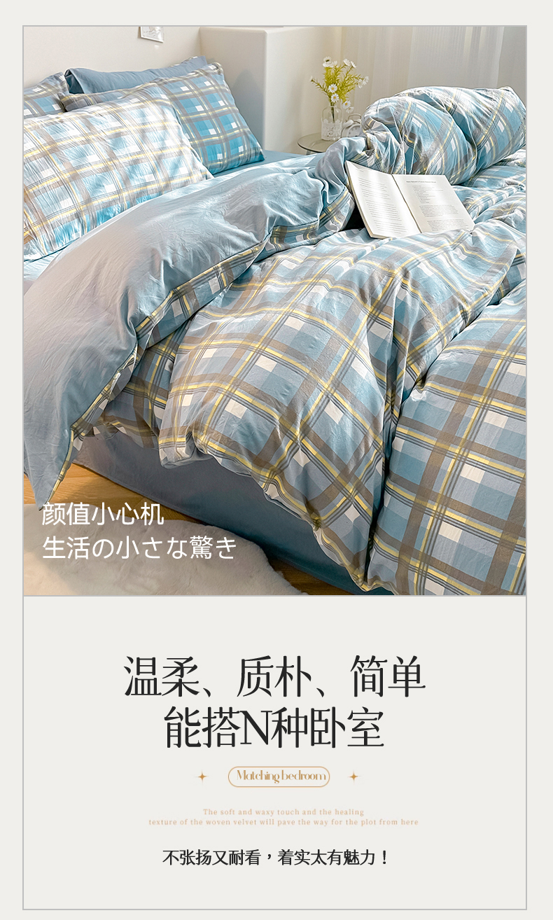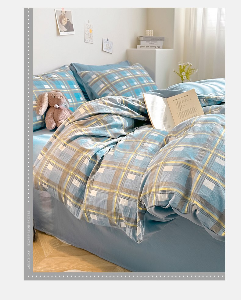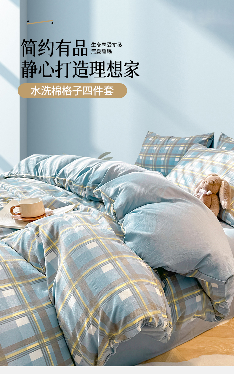 当前位置: 91家纺网 > 商品网购 > 床品套件 > 四件套 > 水洗棉四件套 > 古吉梦 2024新款水洗棉小清新印花格子系列四件套 G-简兮-蓝+海青