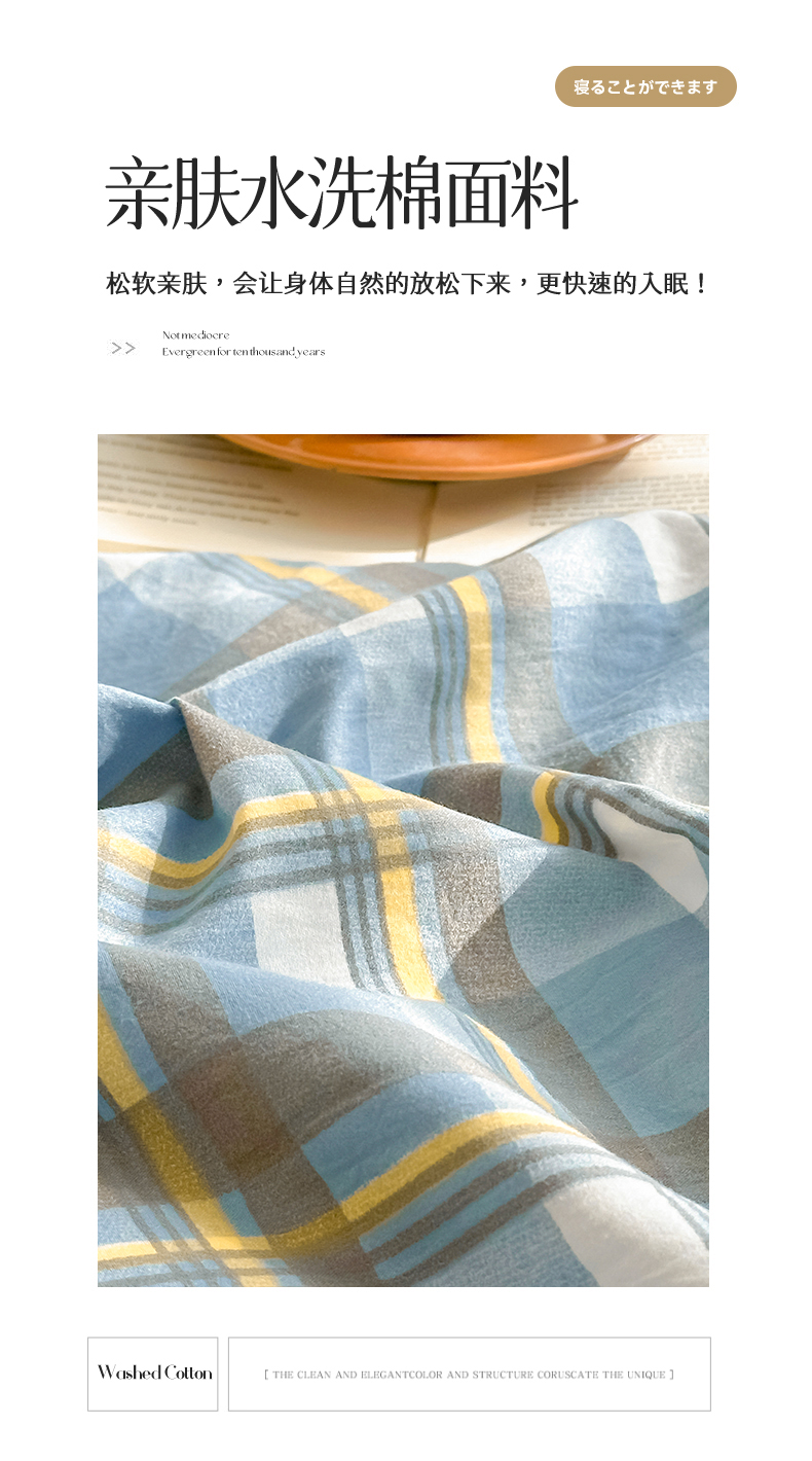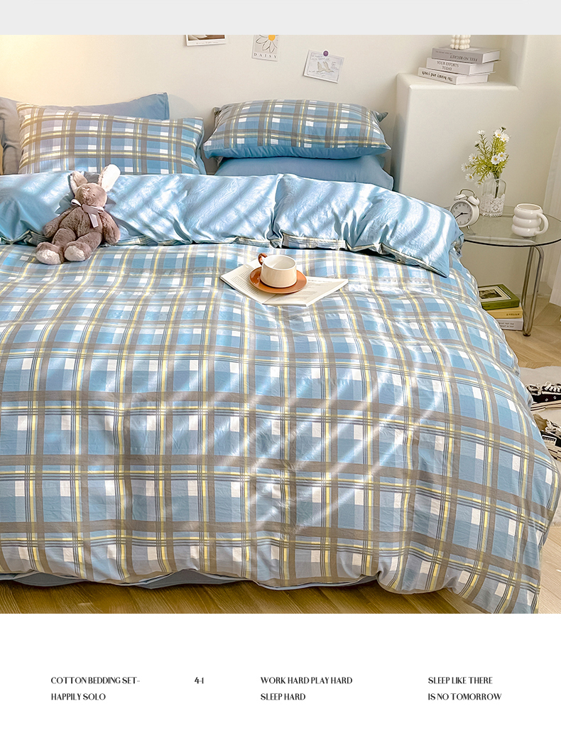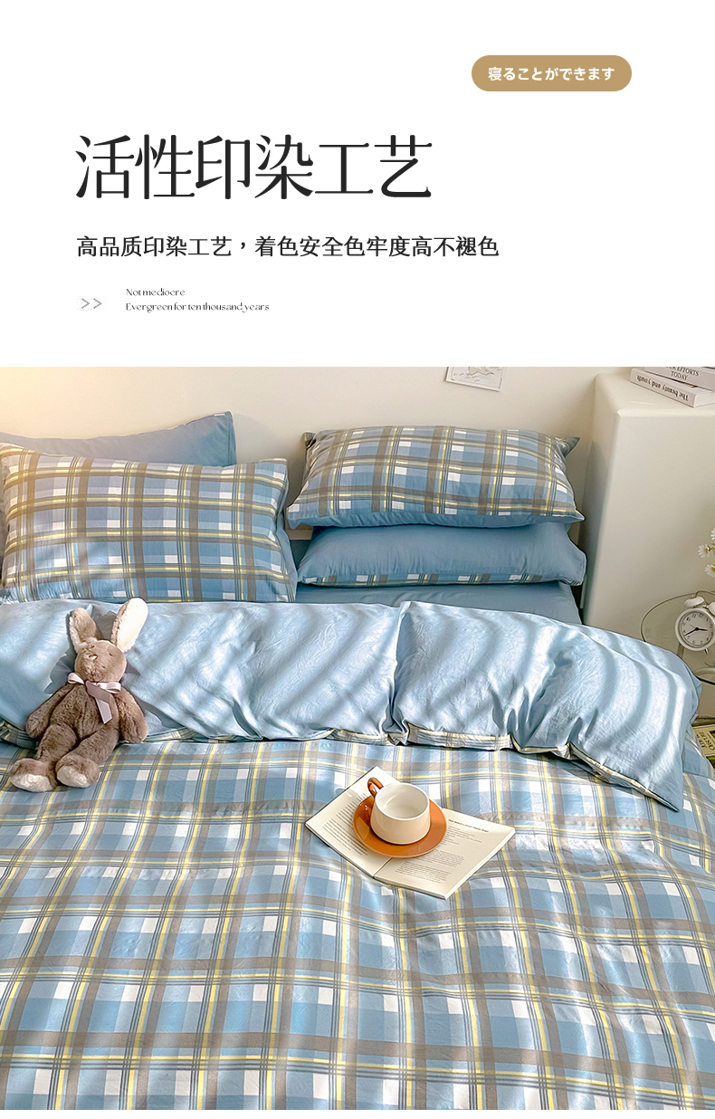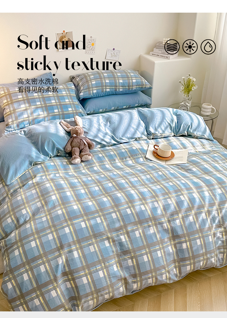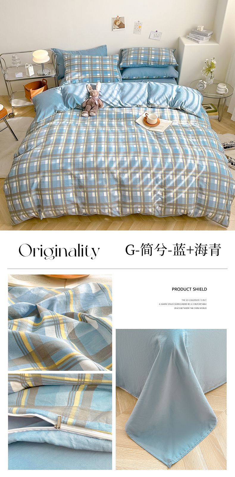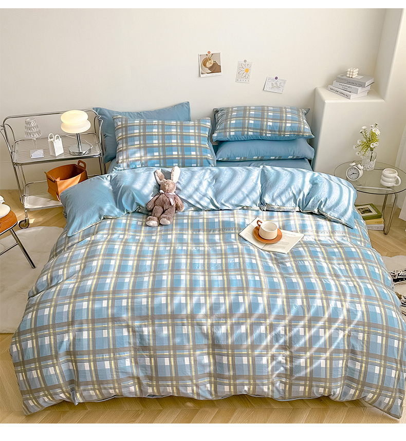当前位置: 91家纺网 > 商品网购 > 床品套件 > 四件套 > 水洗棉四件套 > 古吉梦 2024新款水洗棉小清新印花格子系列四件套 G-简兮-蓝+海青