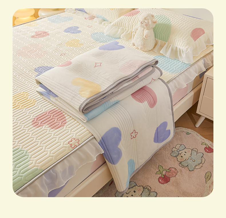 (总)伊人坊 2024新款原棉大豆床护垫,明月白,碧水青,布朗灰,玫瑰粉,米杏色,苹果绿