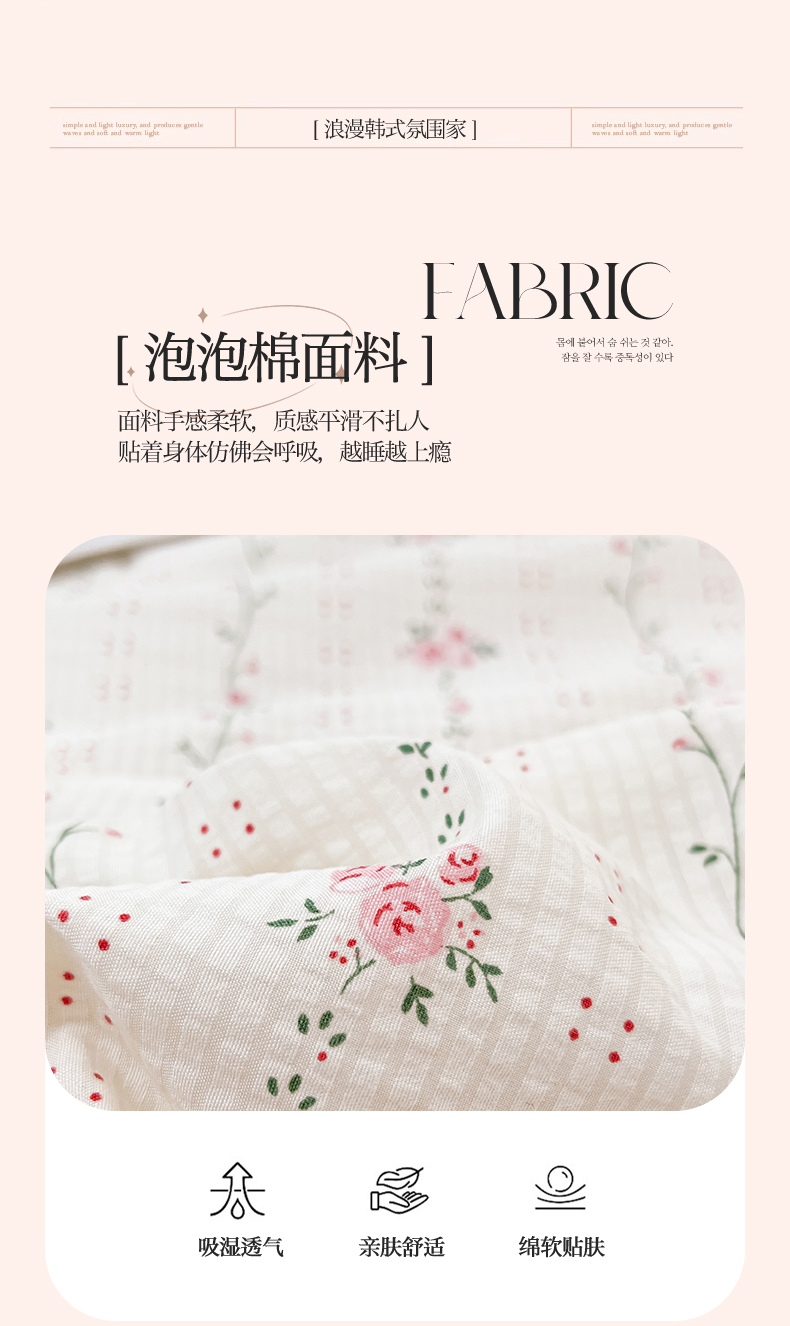 商品名称:恒爱家纺 2024新款韩版泡泡棉床盖系列四件套 伊梦