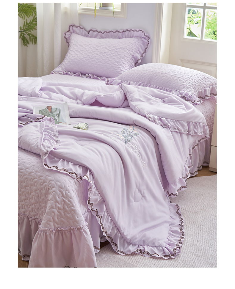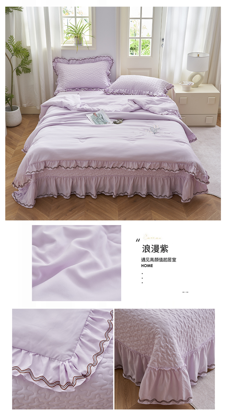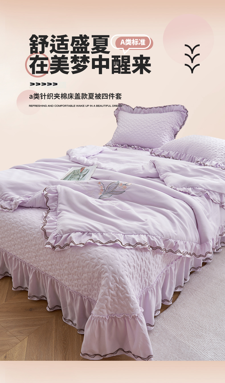 恒爱家纺 2024新款A类针织夹棉床盖款夏被四件套-玉玲珑 浪漫紫