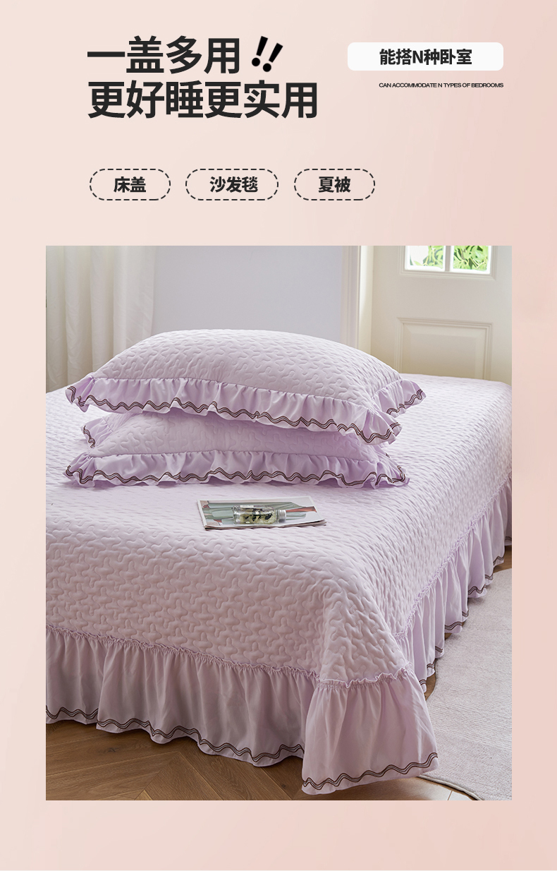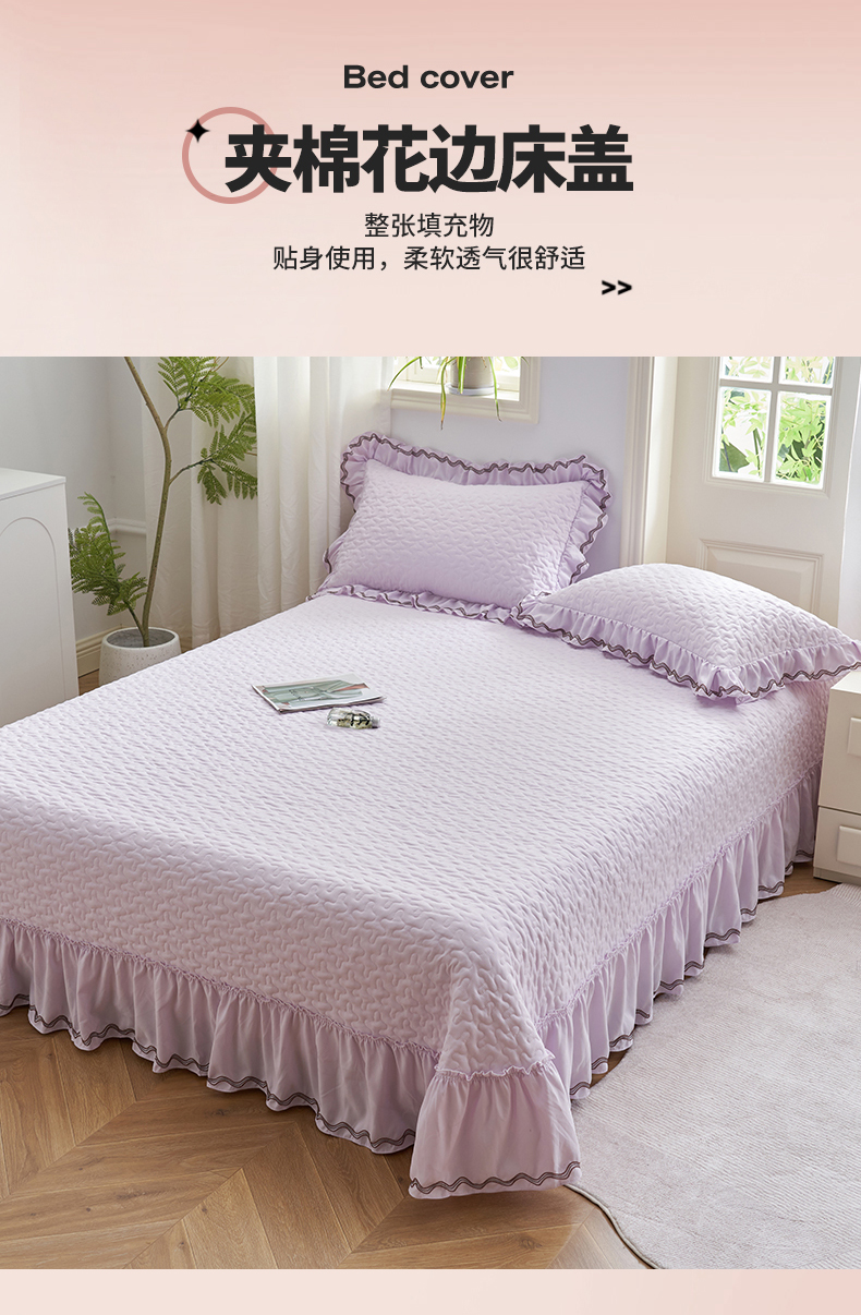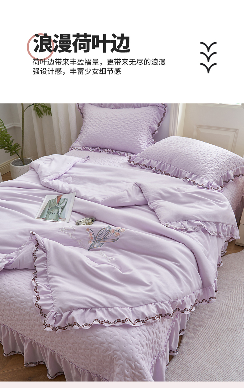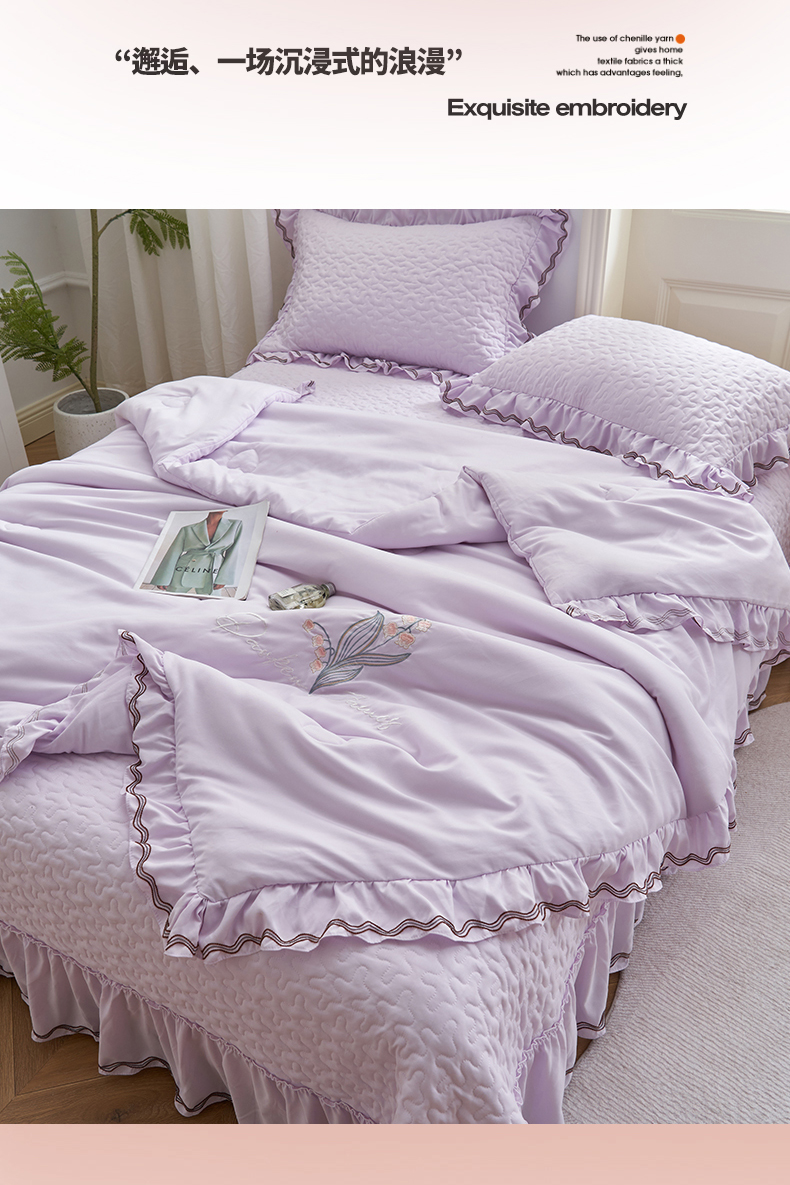 恒爱家纺 2024新款A类针织夹棉床盖款夏被四件套-玉玲珑 浪漫紫