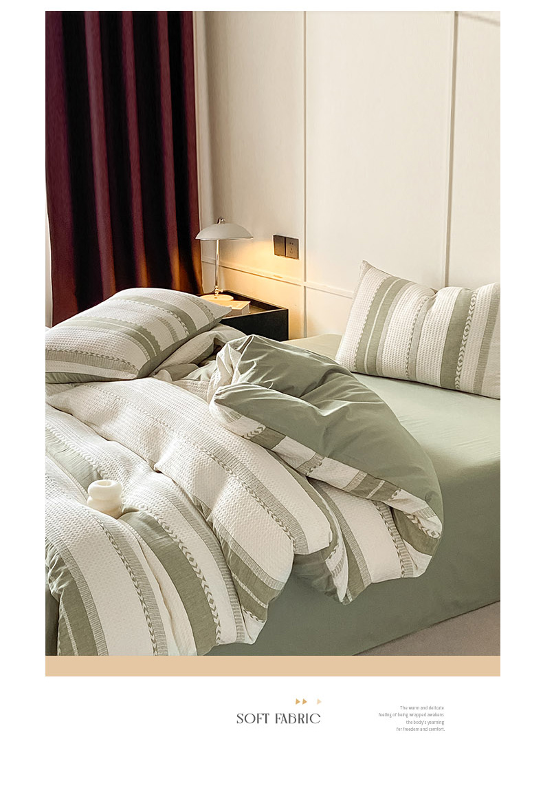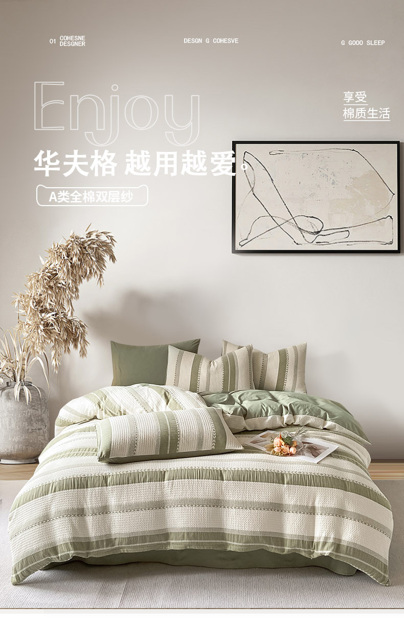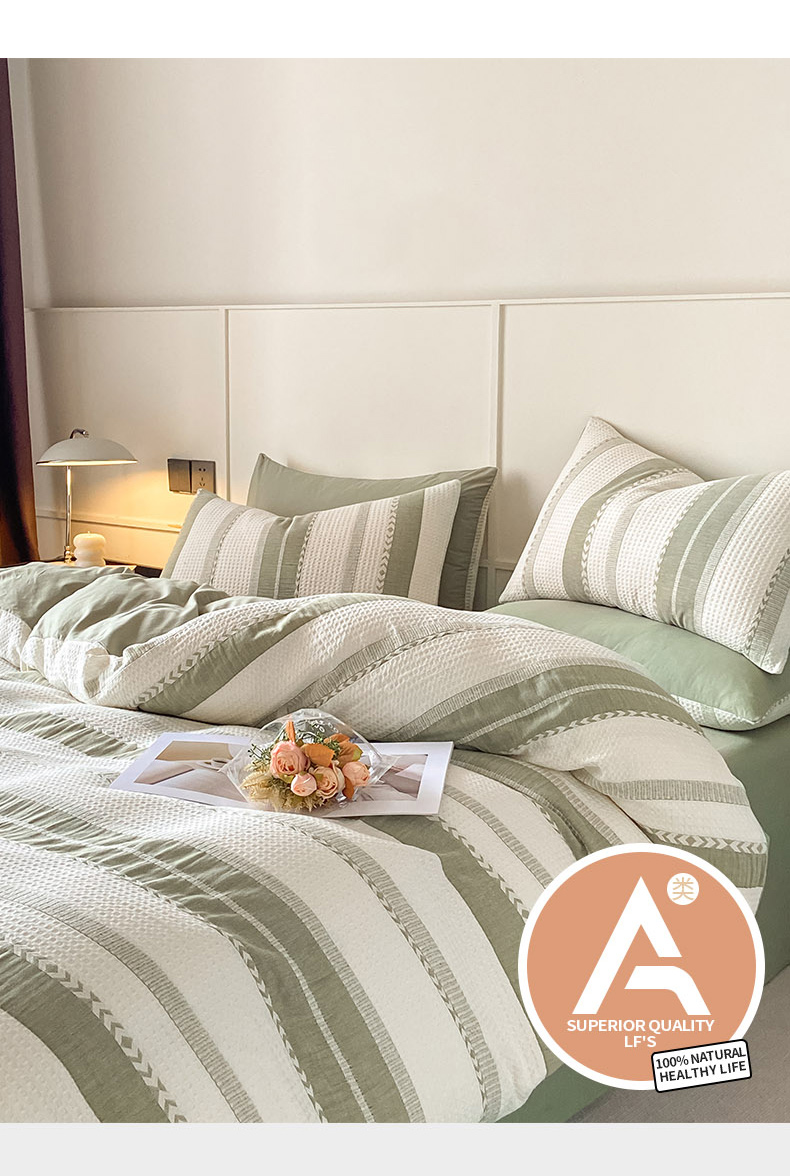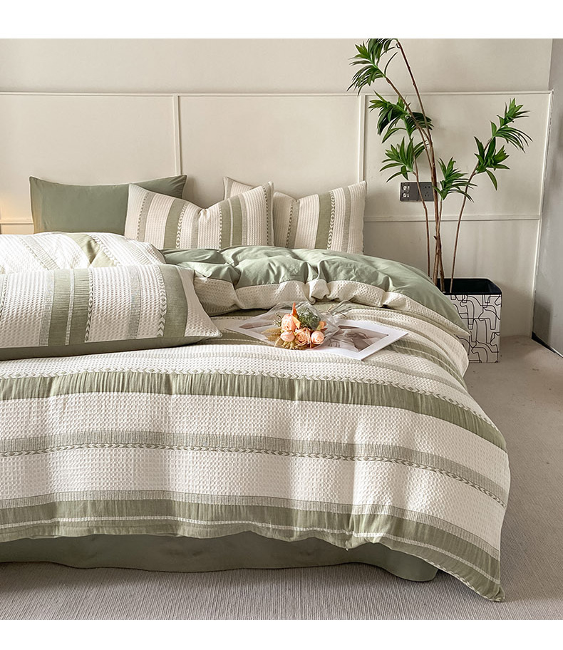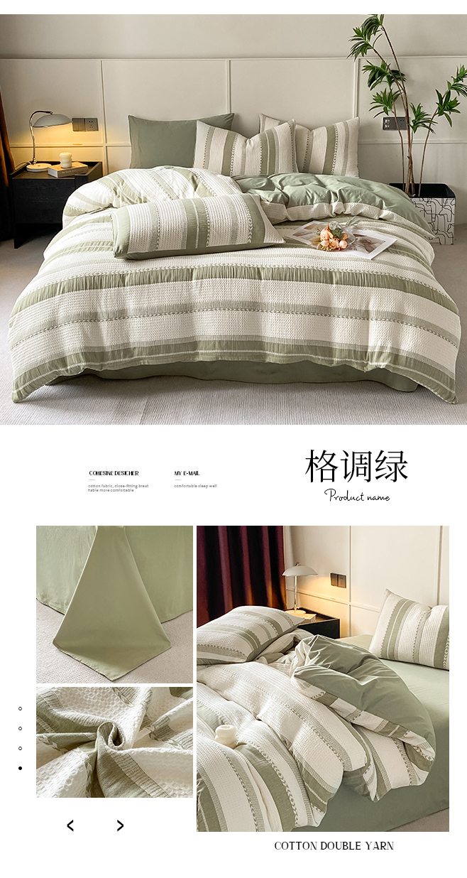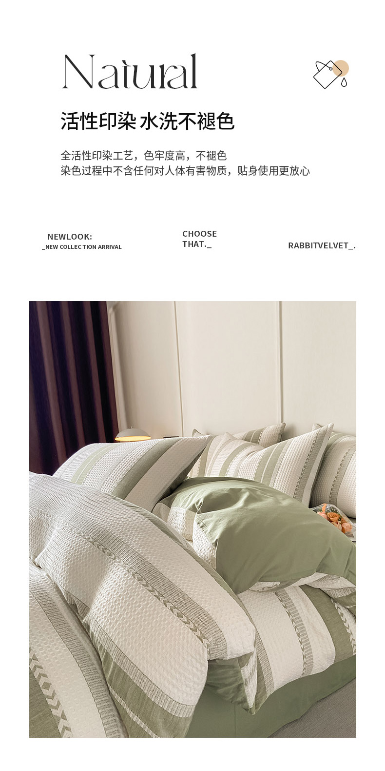 商品名称:ab家纺 2024新款彩条双层纱提花四件套 格调绿