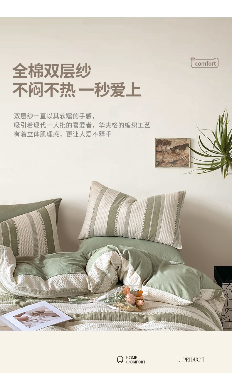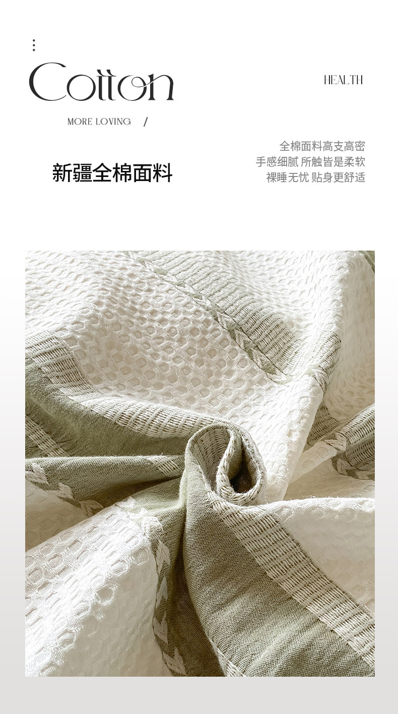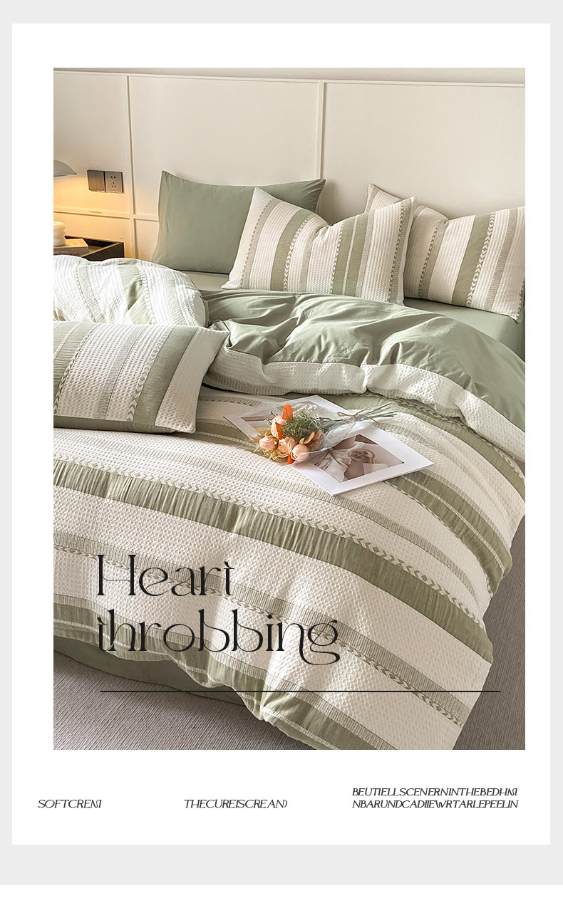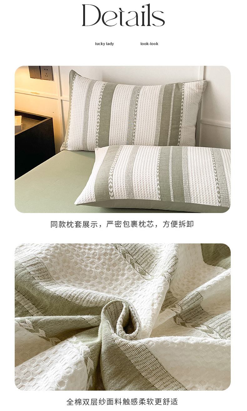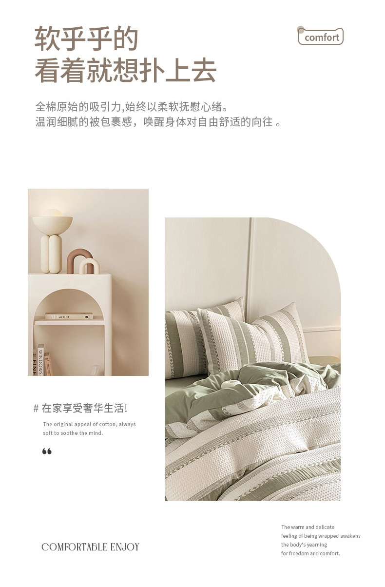 商品名称:ab家纺 2024新款彩条双层纱提花四件套 格调绿
