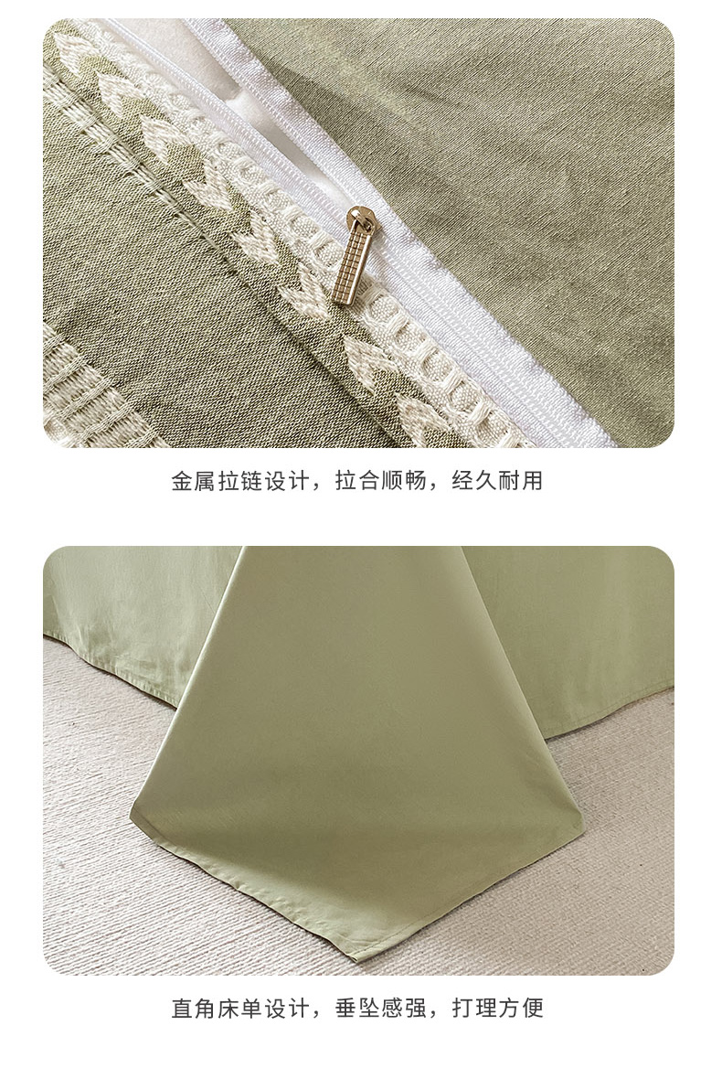 ab家纺 2024新款彩条双层纱提花四件套 格调绿