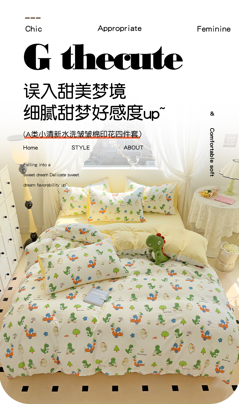 当前位置: 91家纺网 > 商品网购 > 床品套件 > 四件套 > 其它四件套 > 优选良品 2025新款直播爆款母婴级水洗皱皱棉四件套小碎花被套床笠款三件套 森林世界