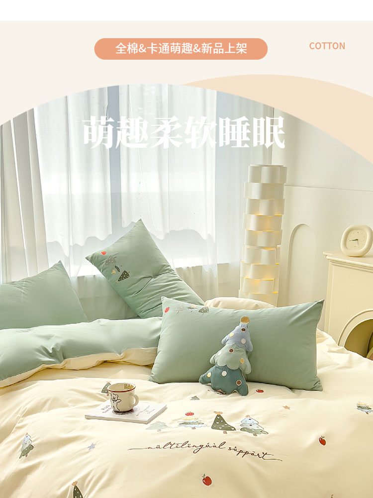商品名称:亲亲公主 2025新款全棉可爱刺绣四件套 幸运树