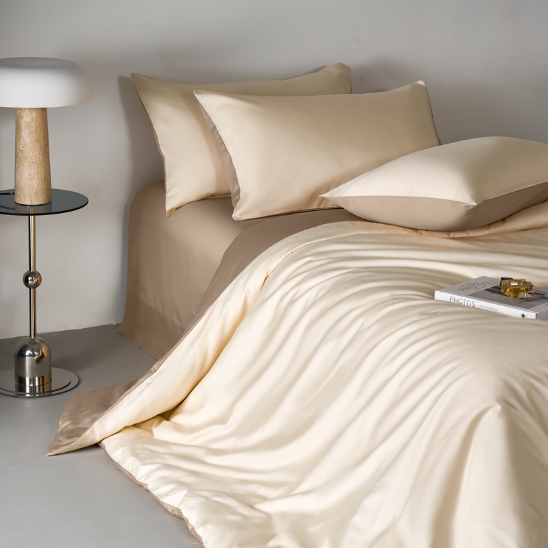 当前位置: 91家纺网 > 商品网购 > 床品套件 > 四件套 > 长绒棉四件套 > 秀色家纺 2025新款轻奢60支贡缎高支贡缎长绒棉全棉四件套简约纯色床上被套床单床笠式 米朵-奶昔白+亚麻咖