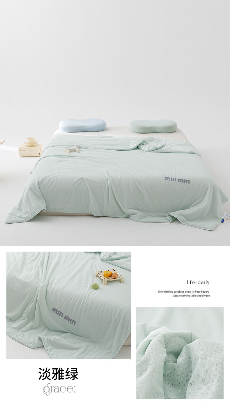 丝幔家纺 2025新款A类提花绣花凉感夏被 被子被芯 淡雅绿