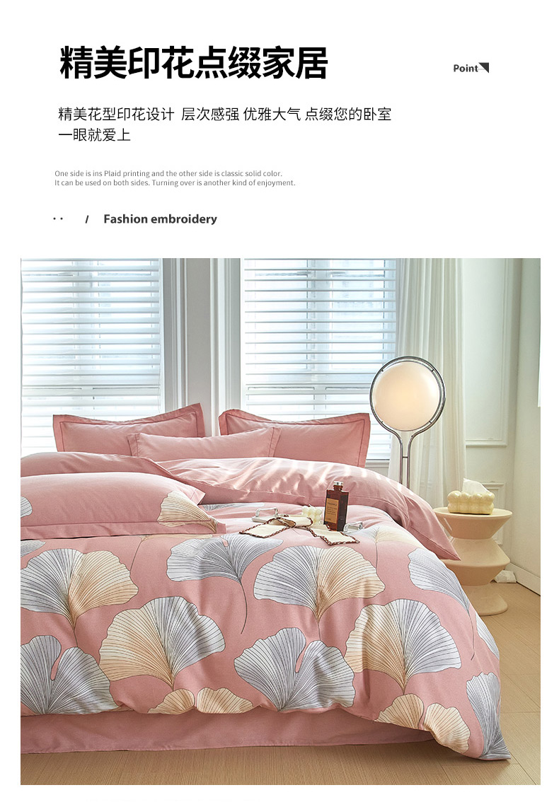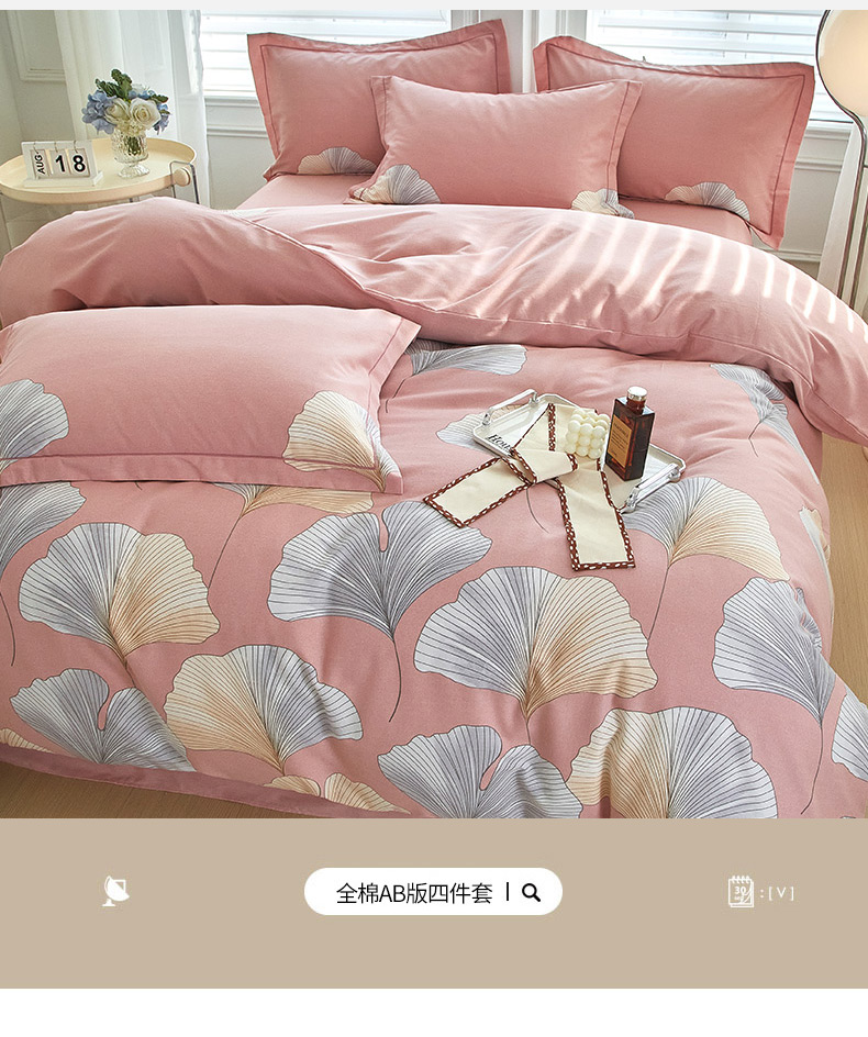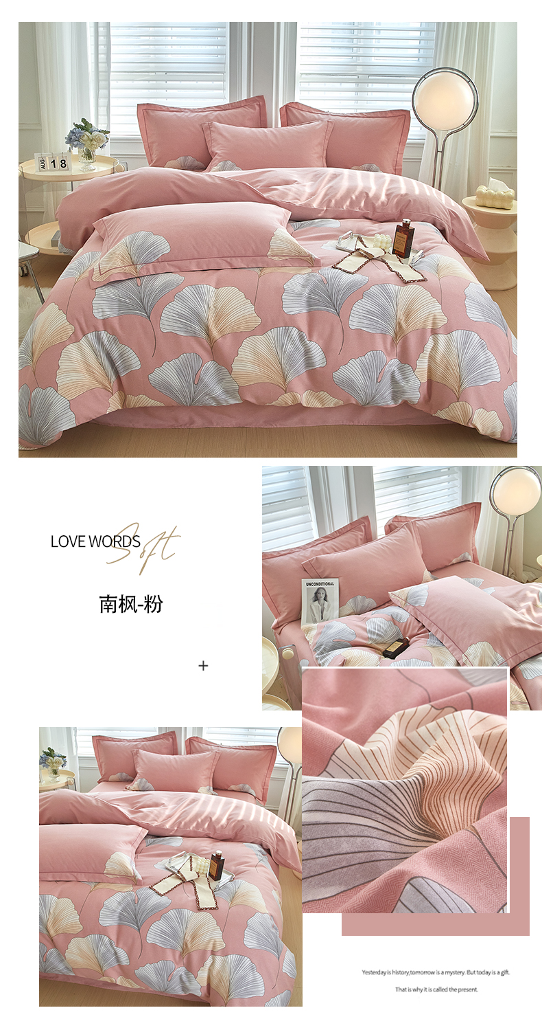 商品名称:金纱玉纺家纺 2024新款加厚AB版四件套 南枫-粉