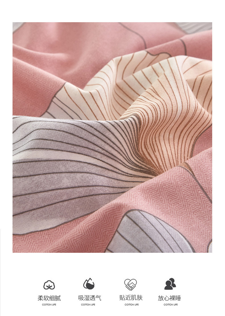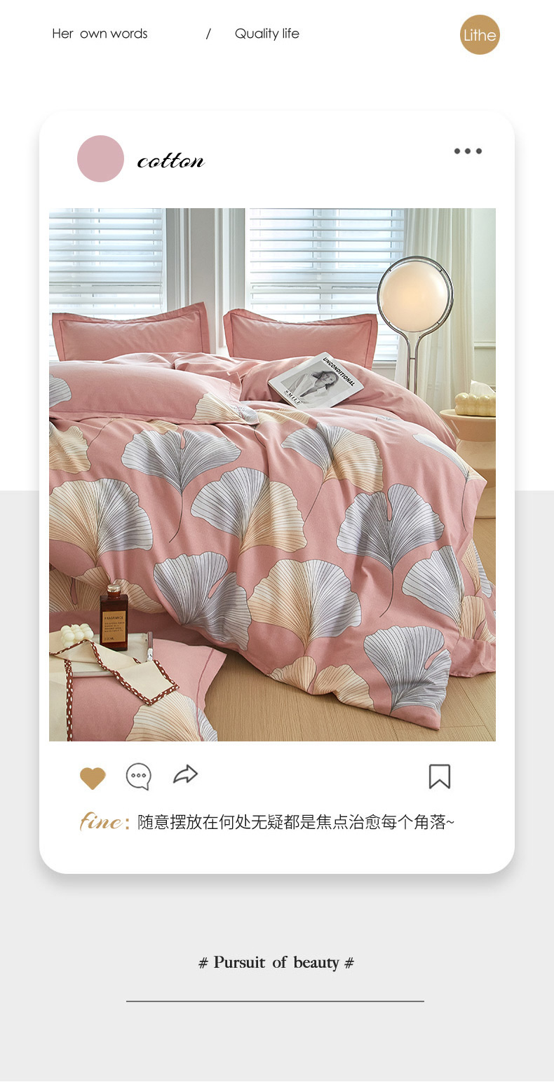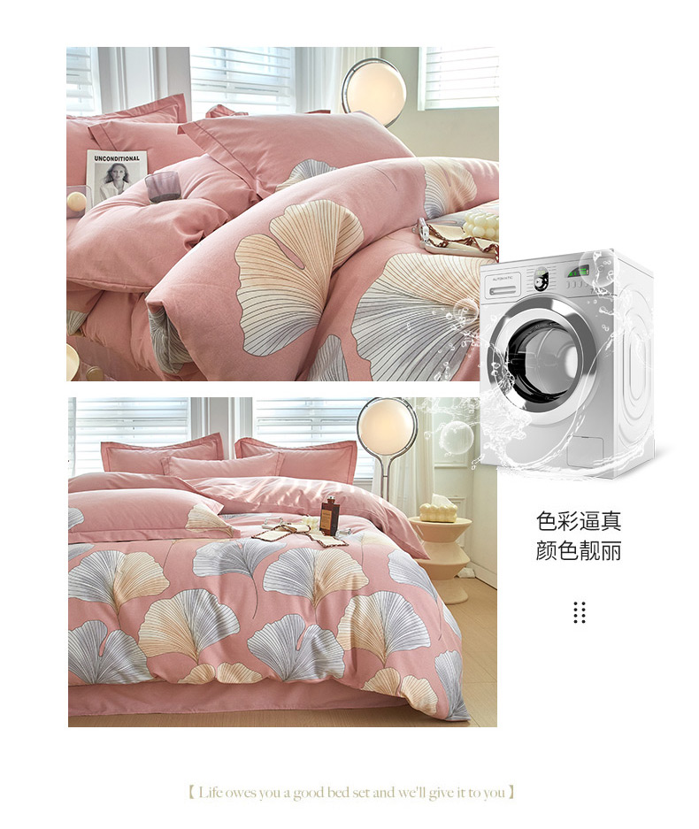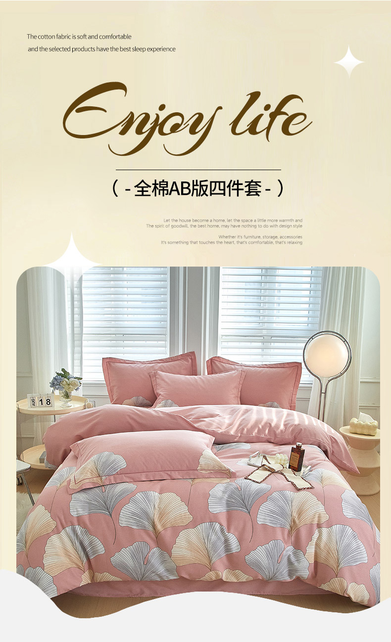 商品名称:金纱玉纺家纺 2024新款加厚AB版四件套 南枫-粉