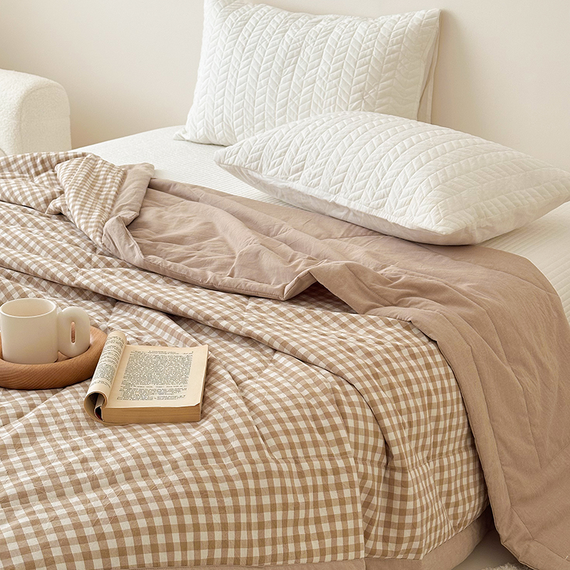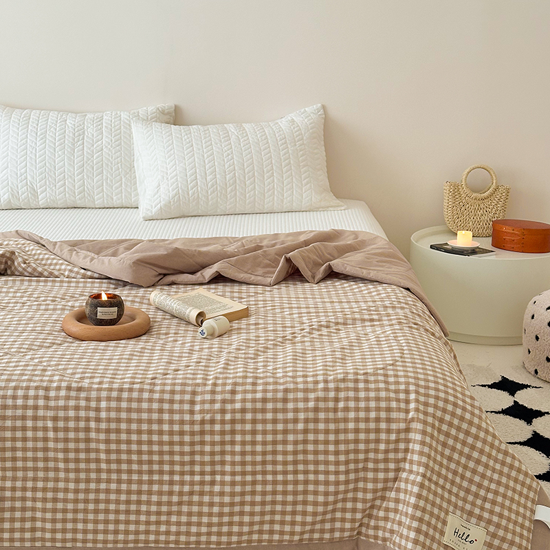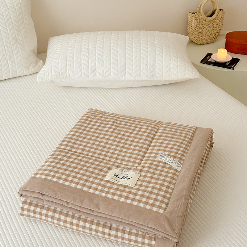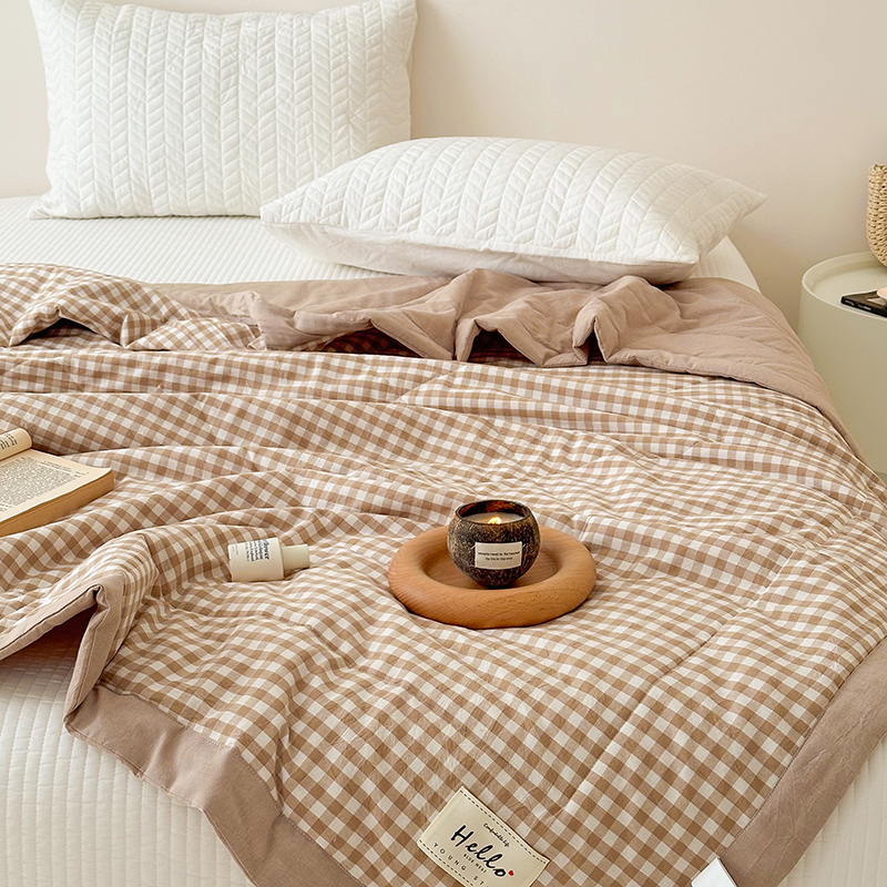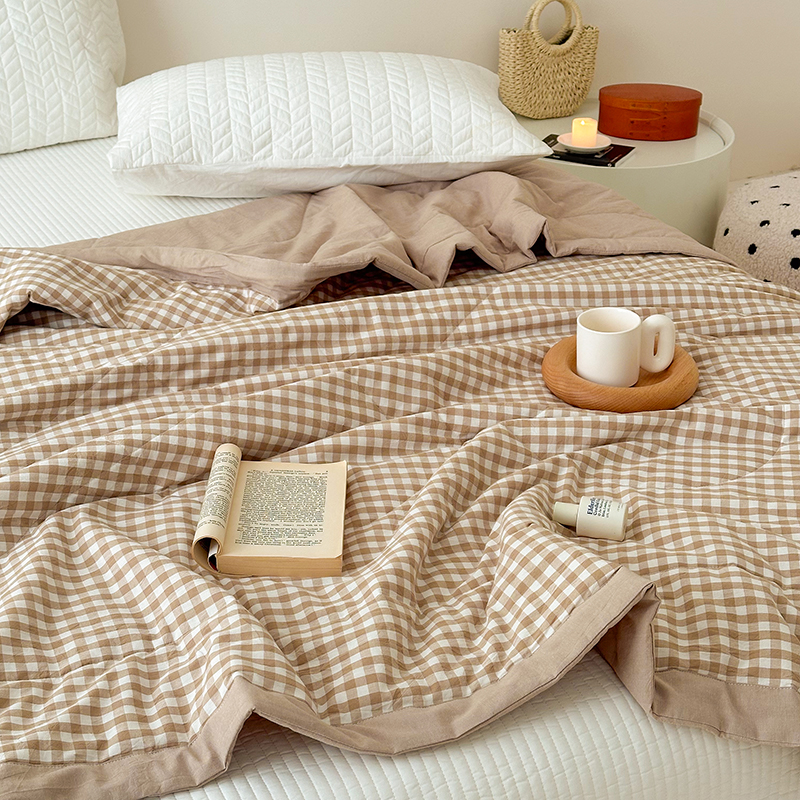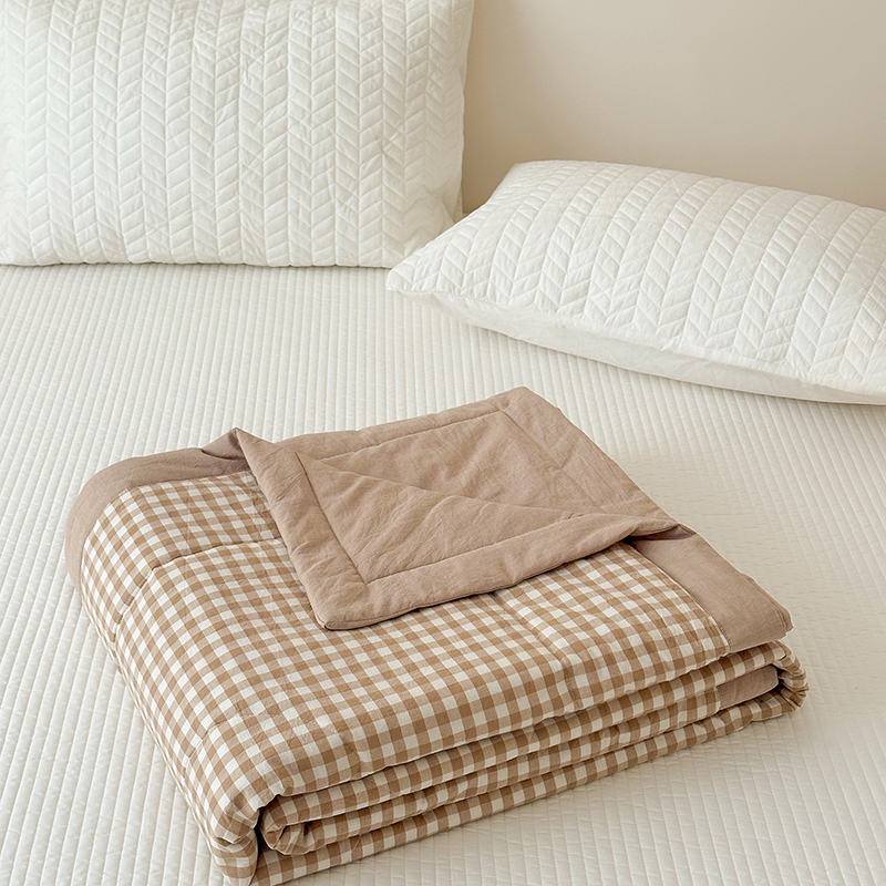 珺柔 2024新款 水洗棉全棉色织提花夏凉被夏被空调被 咖格