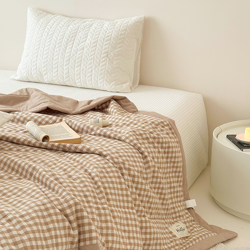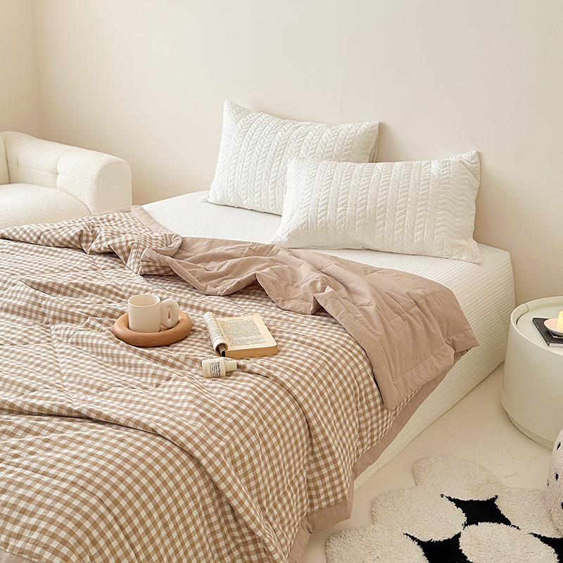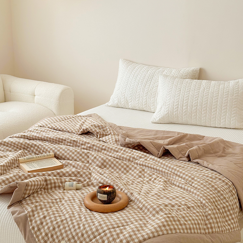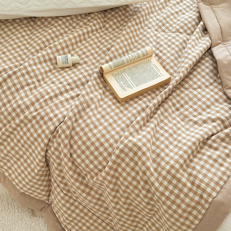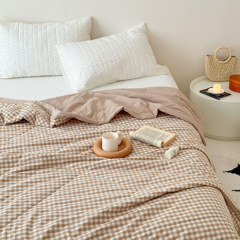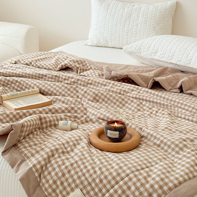 珺柔 2024新款 水洗棉全棉色织提花夏凉被夏被空调被 咖格
