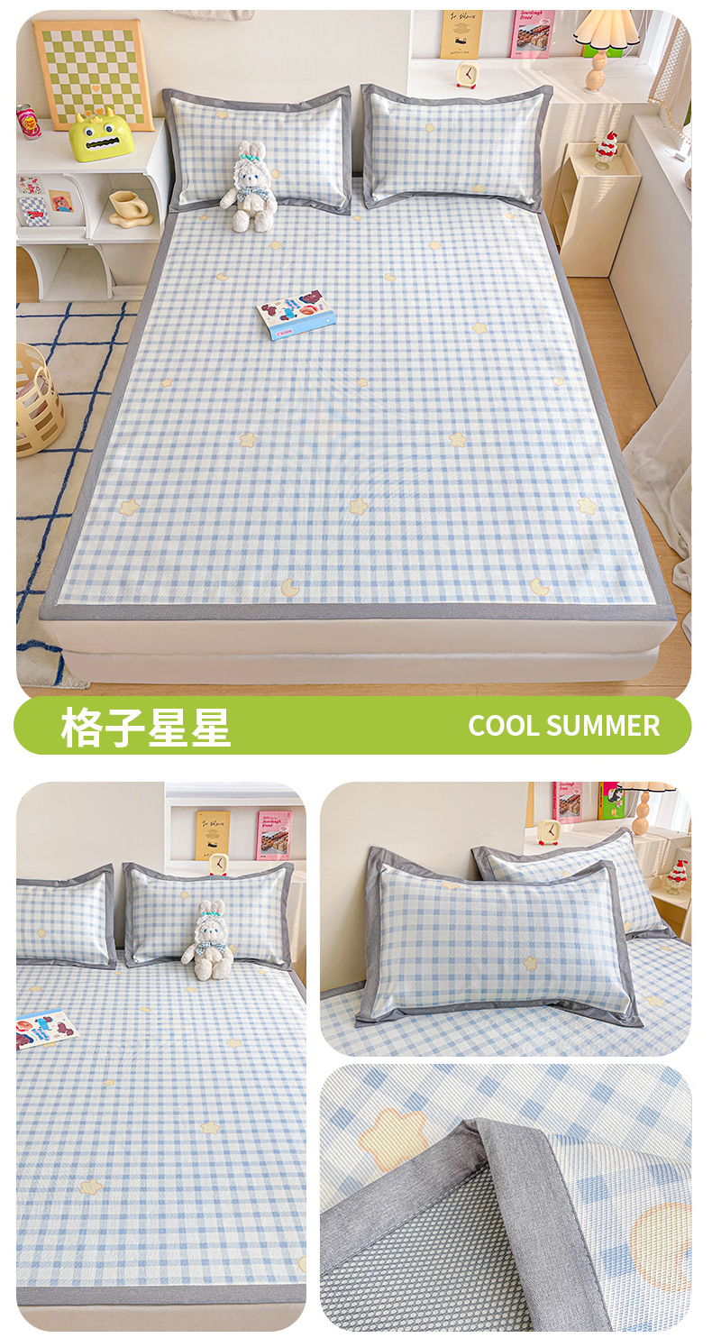 商品名称:川悦生活 2024爆款大版小清新卡通冰丝席凉席 格子星星