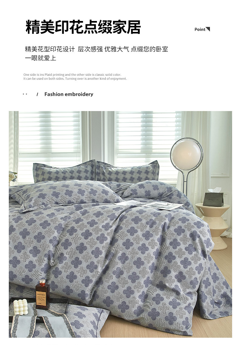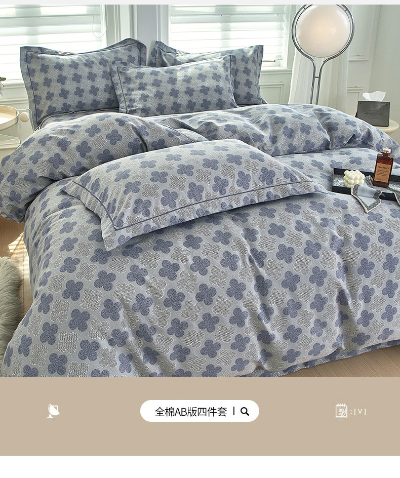 商品名称:金纱玉纺家纺 2024新款加厚AB版四件套 四叶草