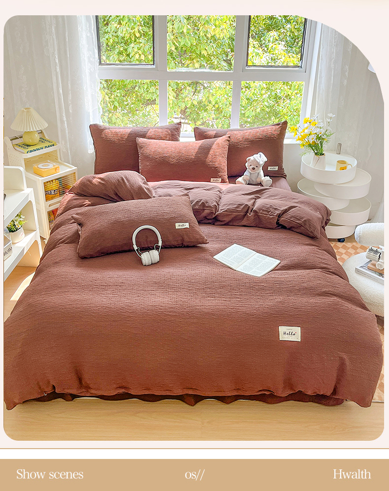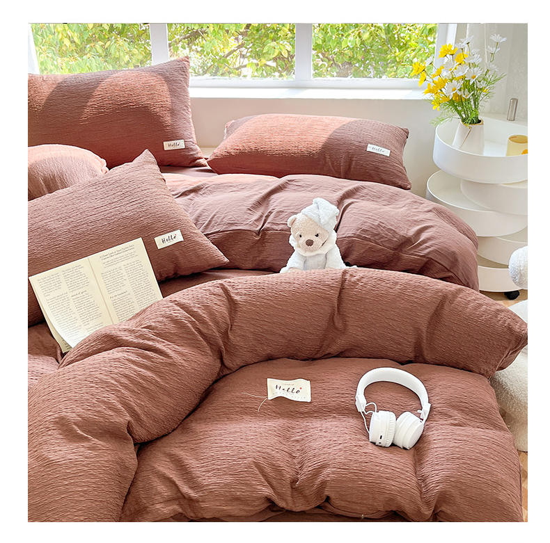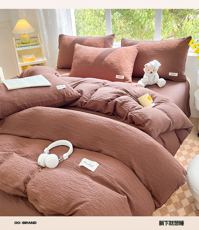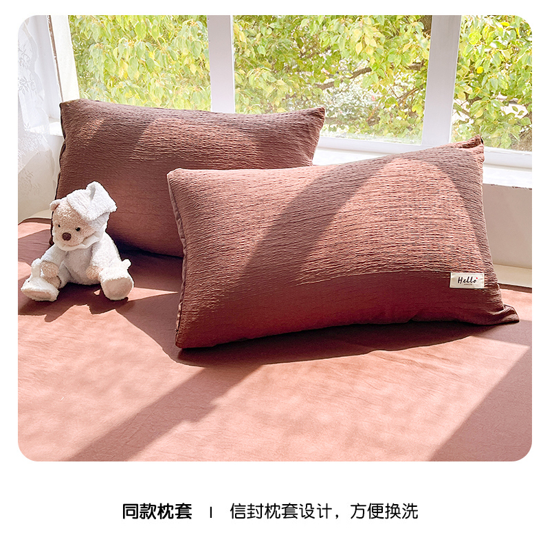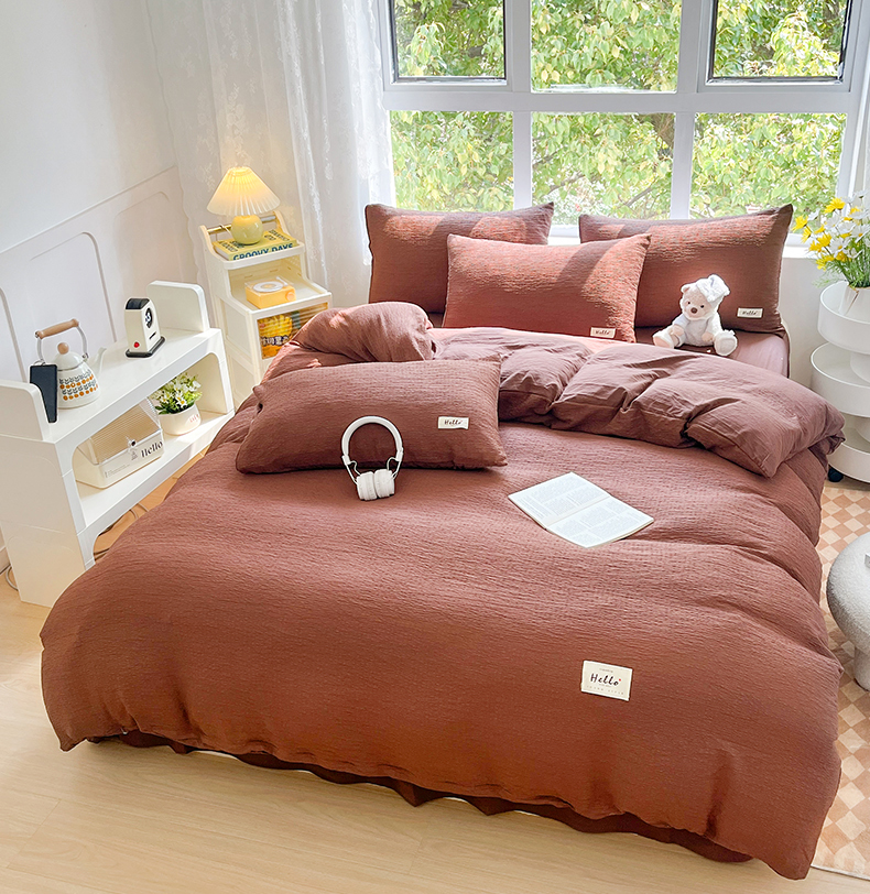 当前位置: 91家纺网 > 商品网购 > 床品套件 > 四件套 > 水洗棉四件套 > 优选良品 2025新款韩版轻奢皱皱纱水洗棉拼色床单床笠四件套三件套-砖红