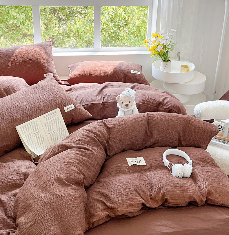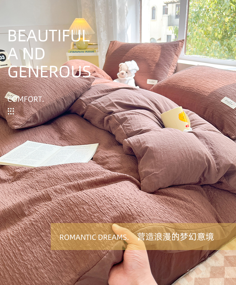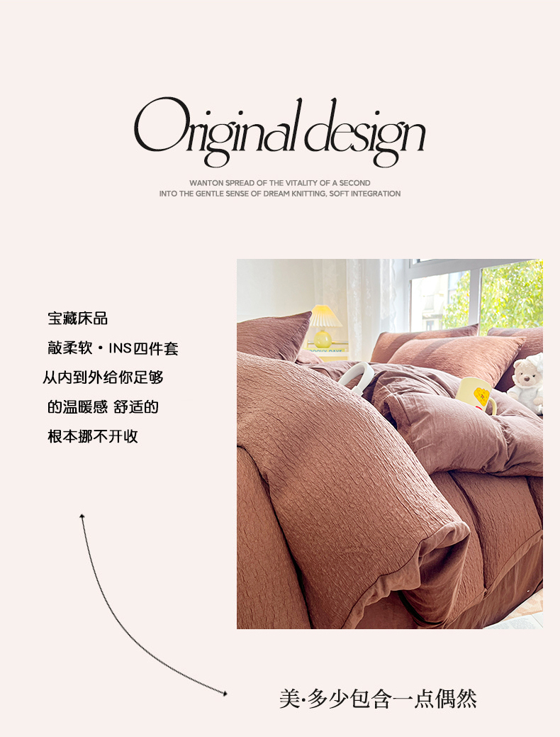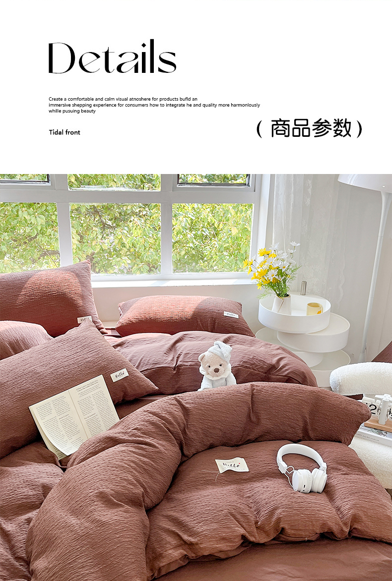 当前位置: 91家纺网 > 商品网购 > 床品套件 > 四件套 > 水洗棉四件套 > 优选良品 2025新款韩版轻奢皱皱纱水洗棉拼色床单床笠四件套三件套-砖红