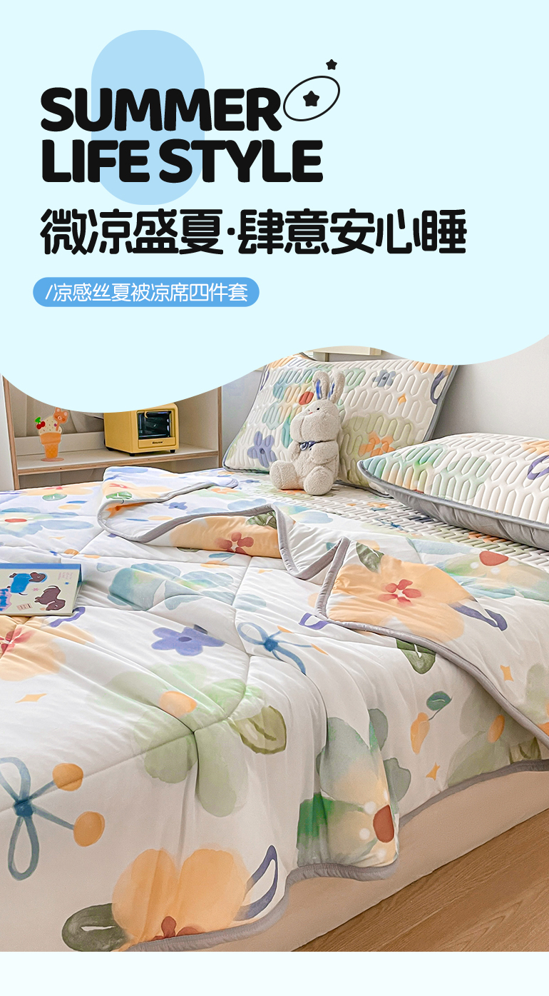 当前位置: 91家纺网 > 商品网购 > 床品套件 > 四件套 > 夏被四件套 > 布卢姆床垫 2025新款A类凉感丝数码印花夏被凉席四件套 彩色花园