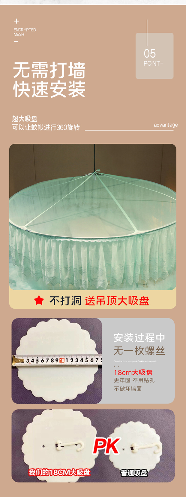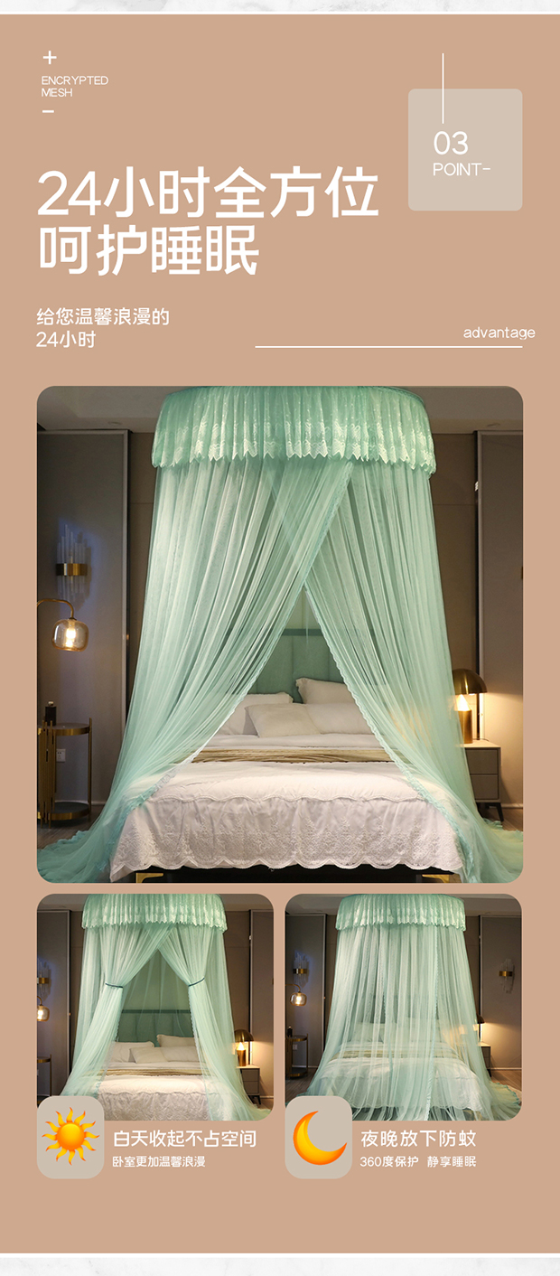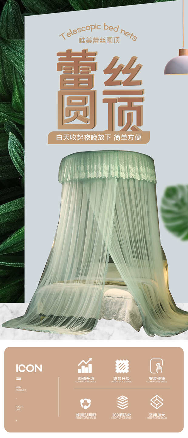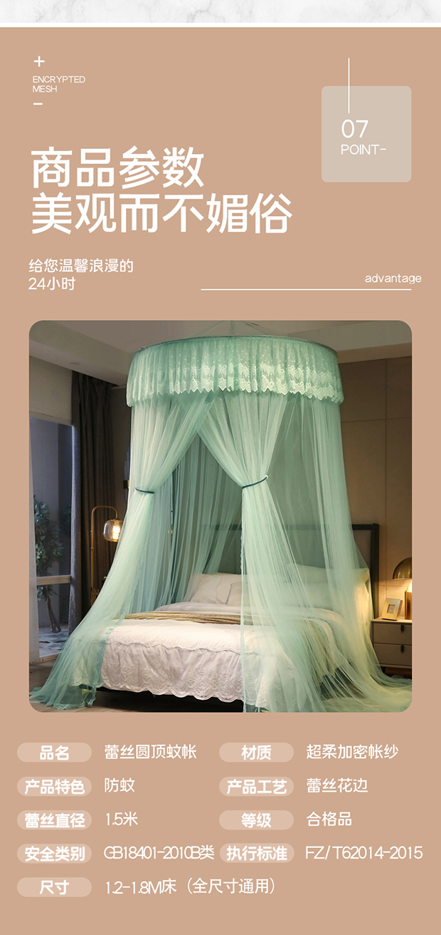 商品名称:夏彩 2024新款加高加大加密1.5米直径蕾丝大圆顶88551 88551-水绿