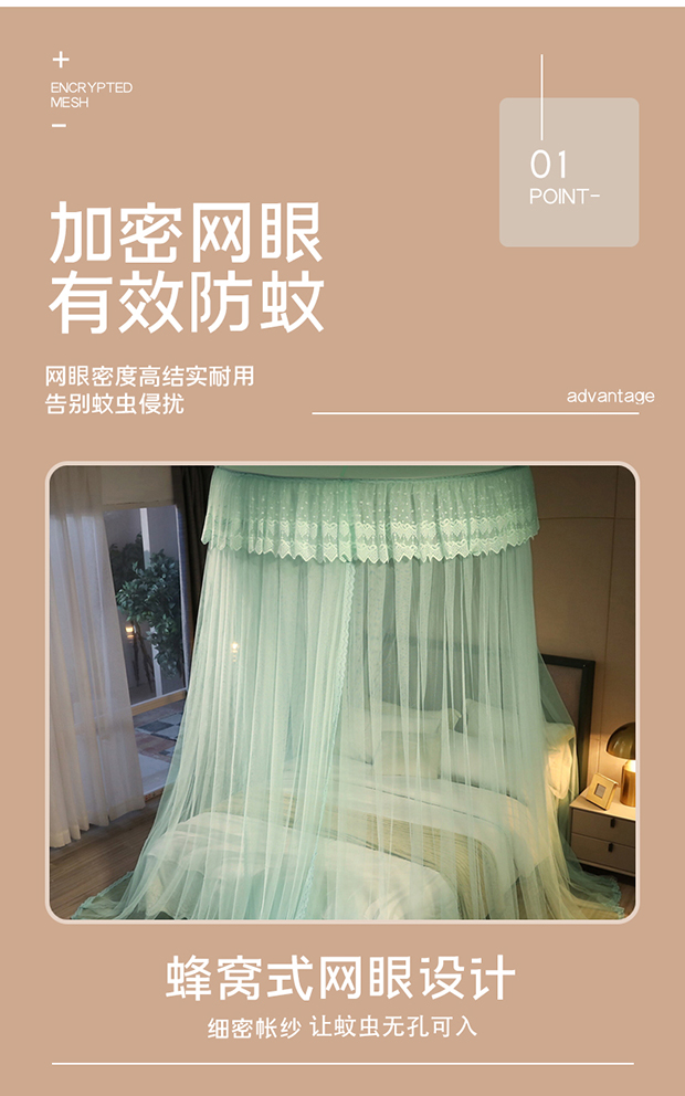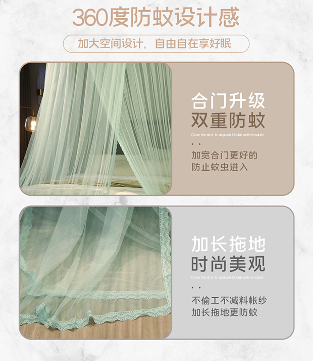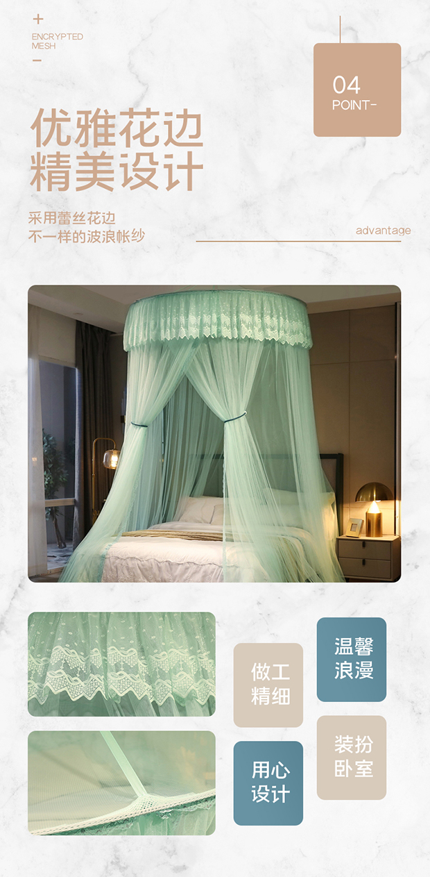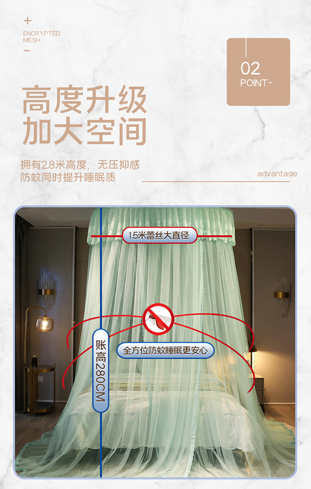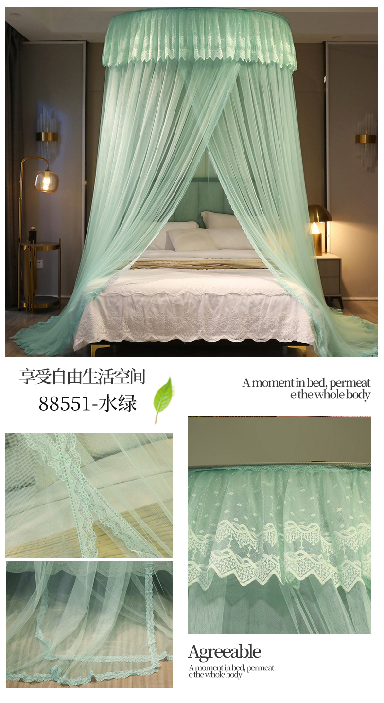 夏彩 2024新款加高加大加密1.5米直径蕾丝大圆顶88551 88551-水绿