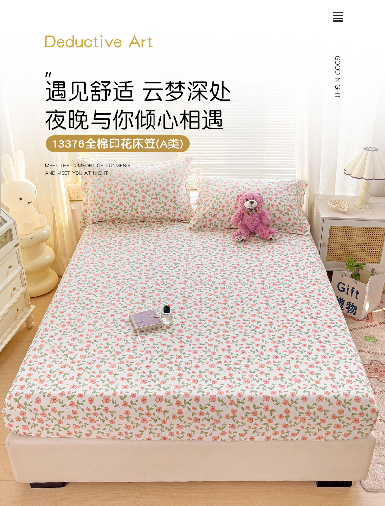 大柏树 2025新款全棉13376印花四件套系列(可定制)-单床笠 春晴